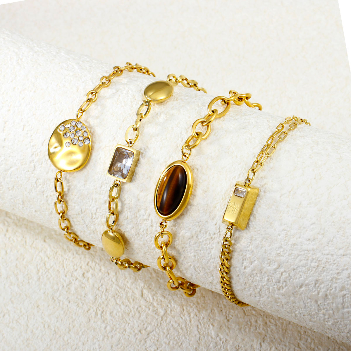 黑色锆石手镯镀18K玫瑰金不锈钢直扣手镯