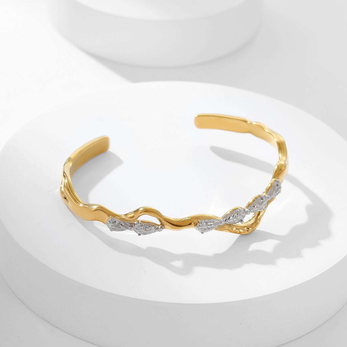 " 不规则开口锆石树枝设计手镯"