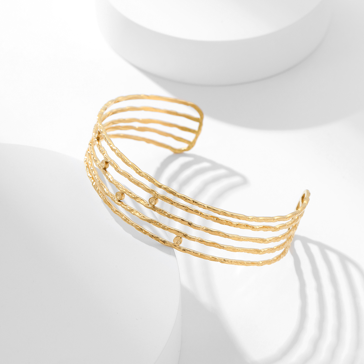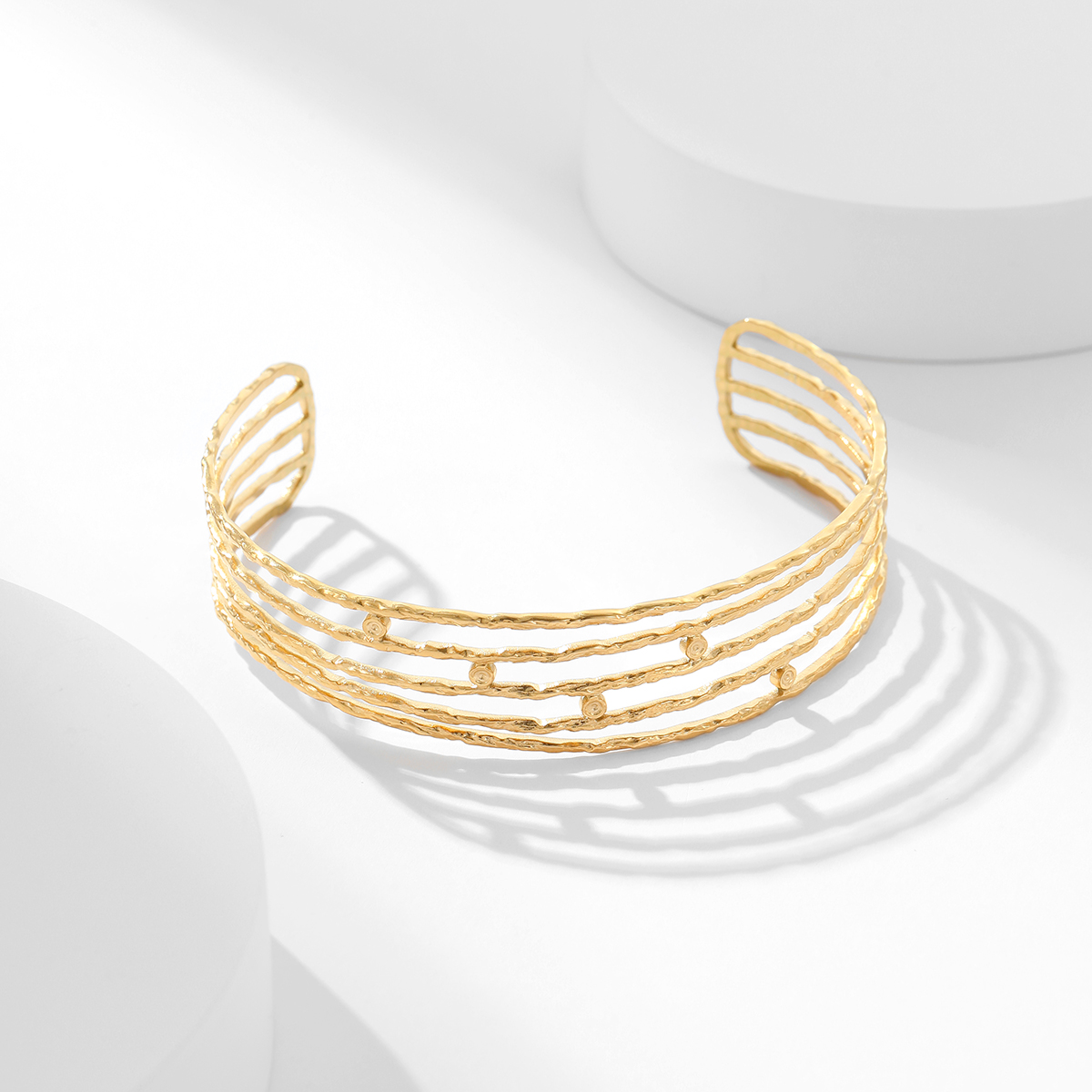 时尚不锈钢五线镂空黑色珐琅开口手镯