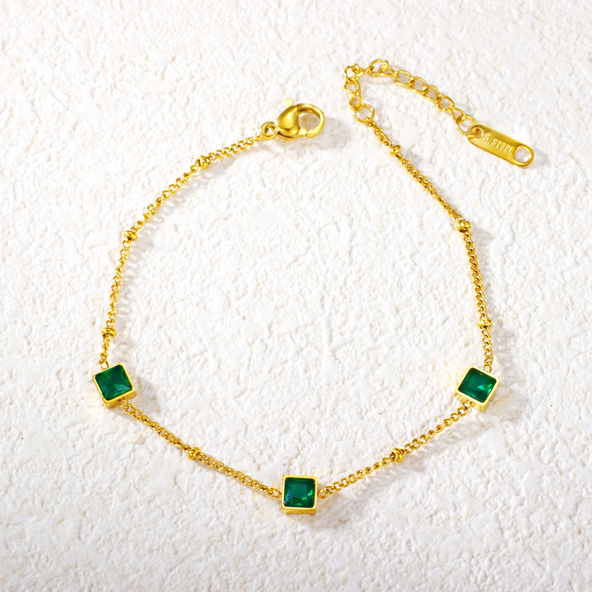 "法式优雅几何不锈钢方形祖母绿锆石吊坠手链"