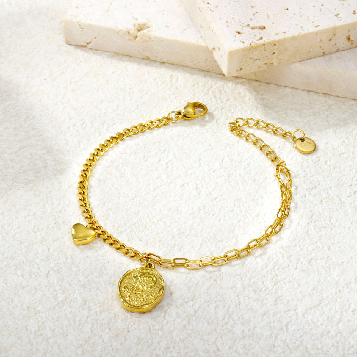 "时尚18K镀金不锈钢雏菊手链"