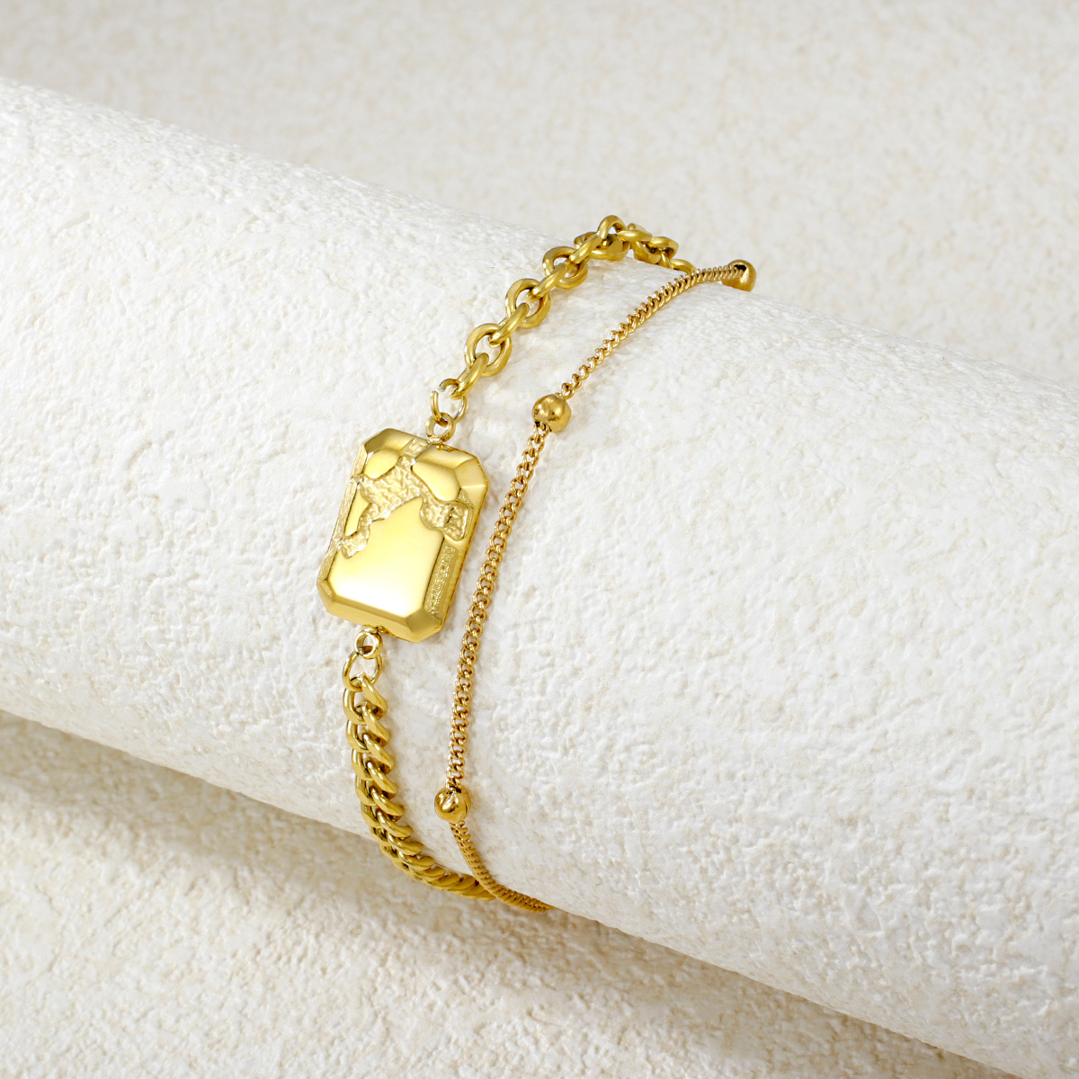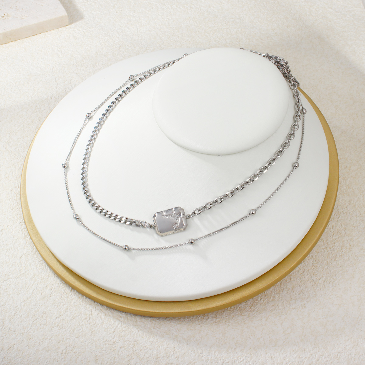 18K镀金不锈钢首饰复古双层链方形吊坠