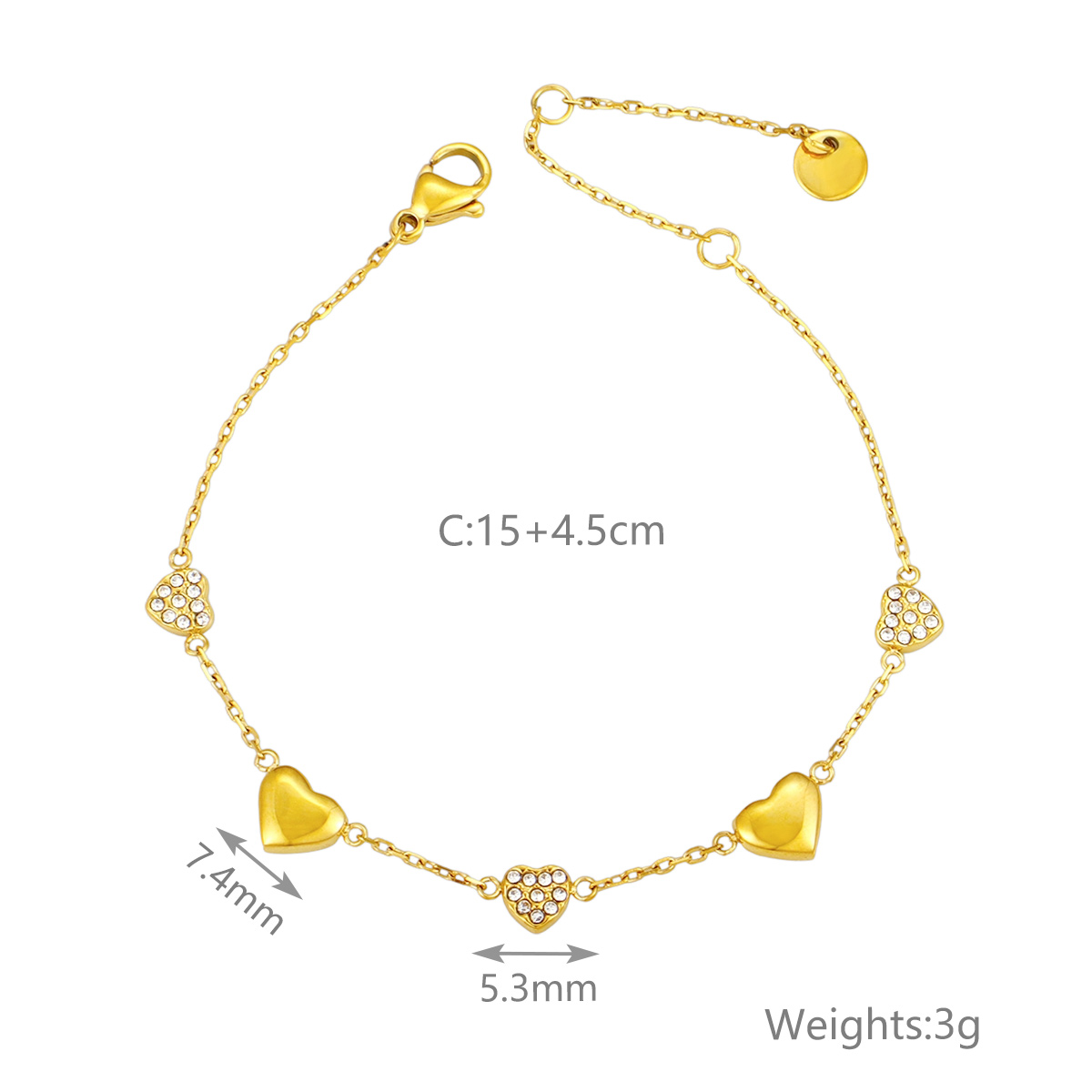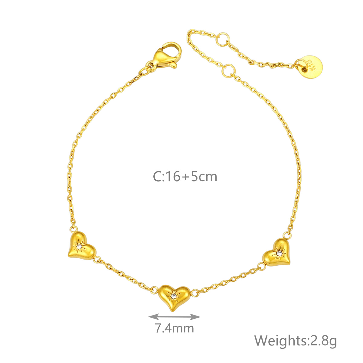 "批发镂空心形手链 18k镀金不锈钢桃心女士珠宝"