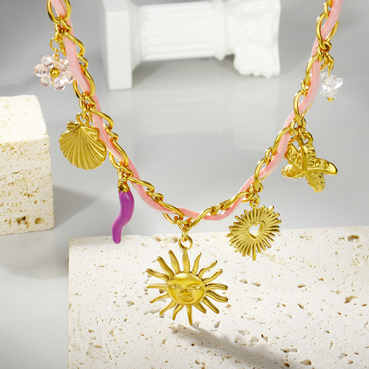 "不锈钢波西米亚魅力项链夏季吊坠项链"