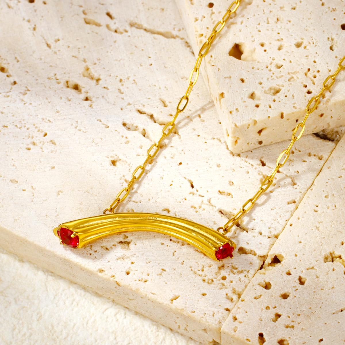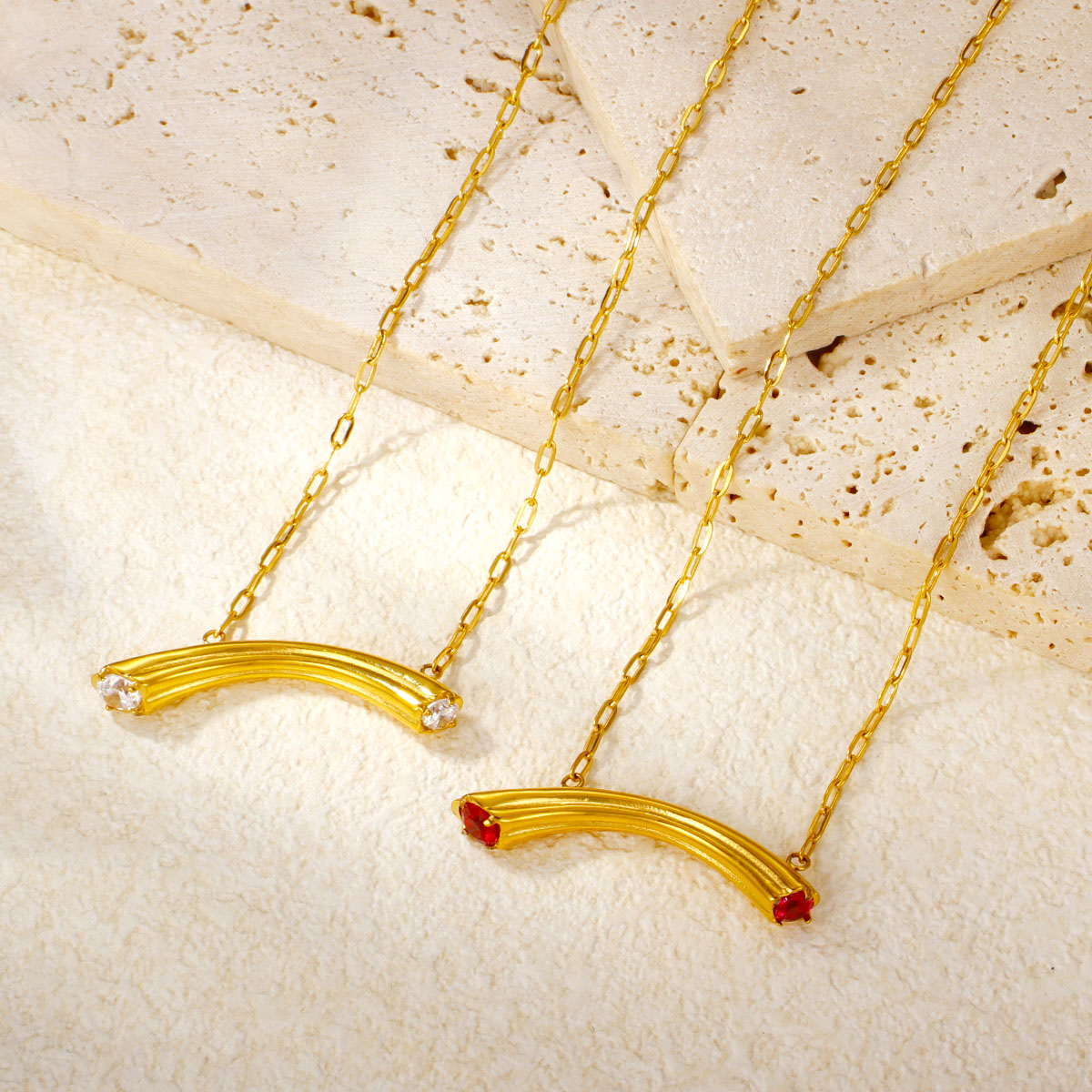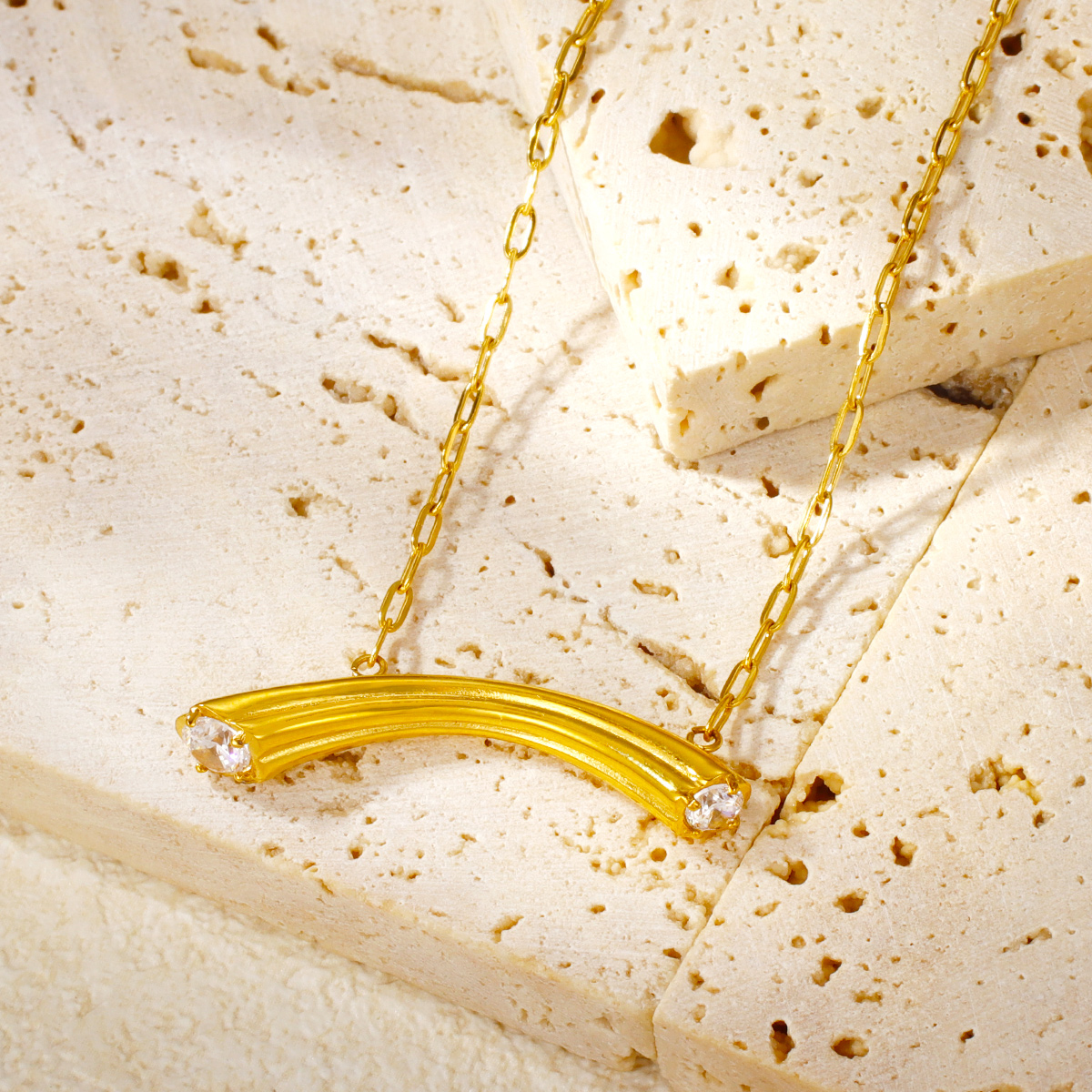 "时尚18K镀金不锈钢锆石弧形吊坠"