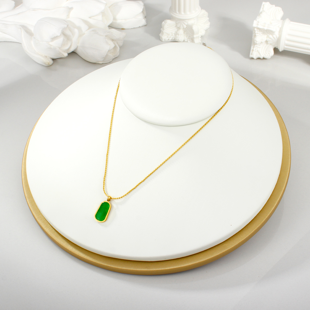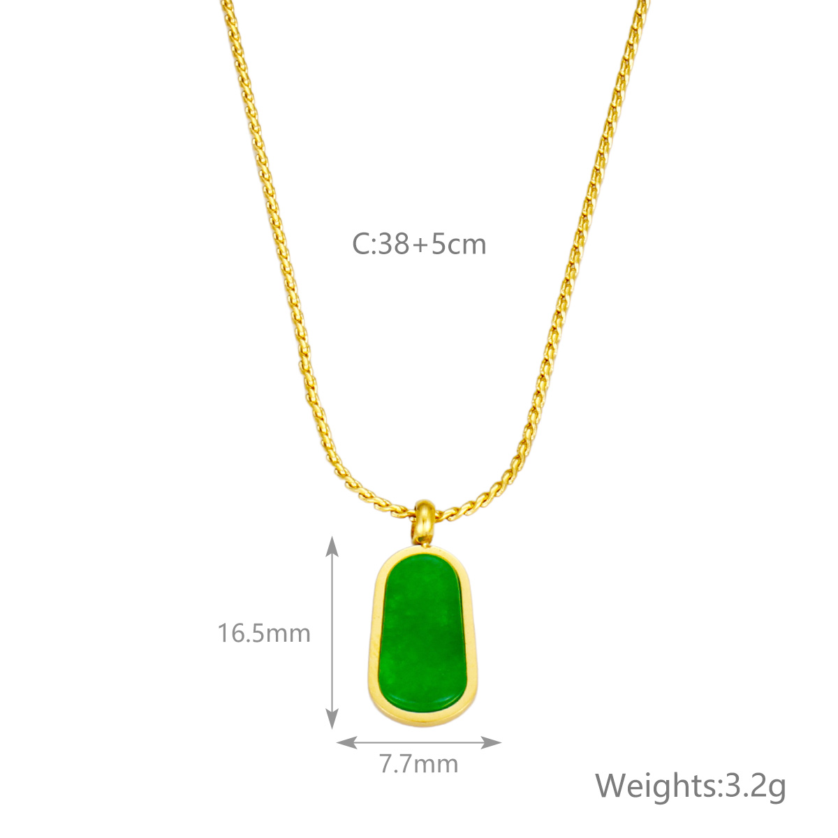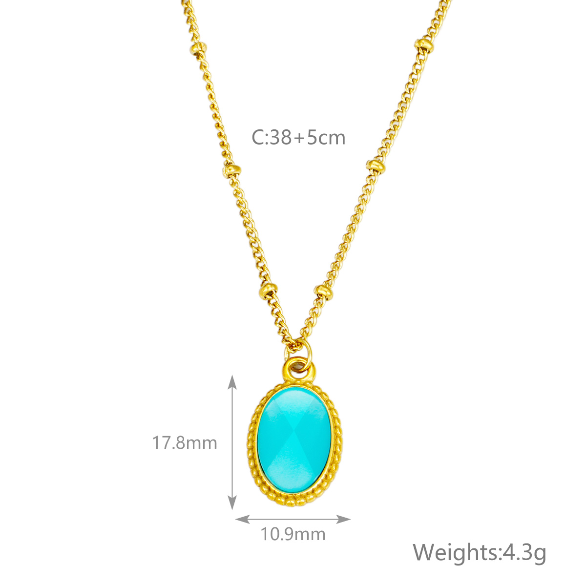 时尚18K镀金不锈钢细链椭圆形绿蓝色天然石吊坠项链