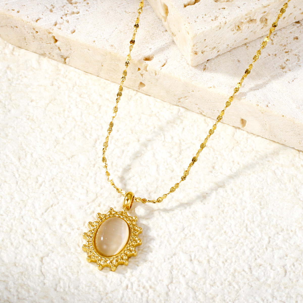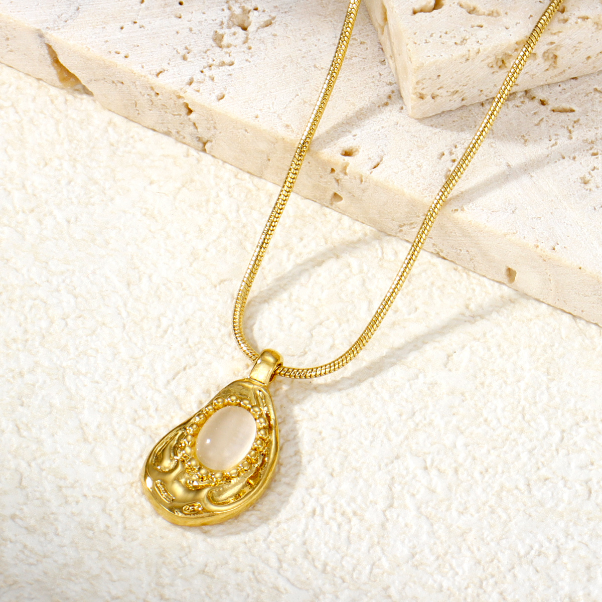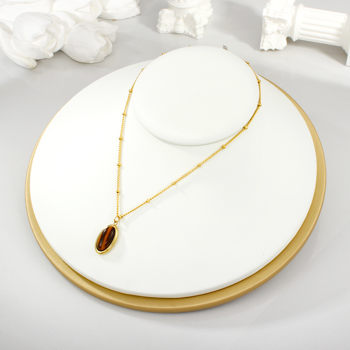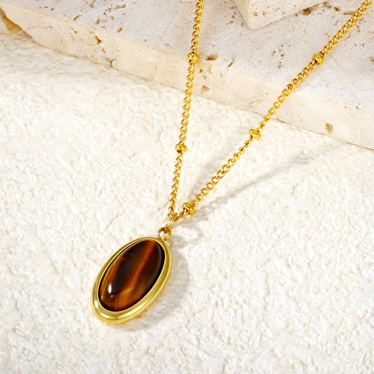 时尚18K镀金不锈钢细链椭圆形绿蓝色天然石吊坠项链