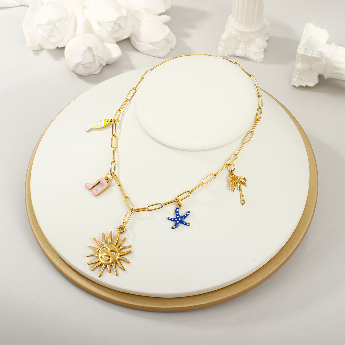 "夏季海洋风不锈钢镀18k金可拆卸贝壳吊坠项链"
