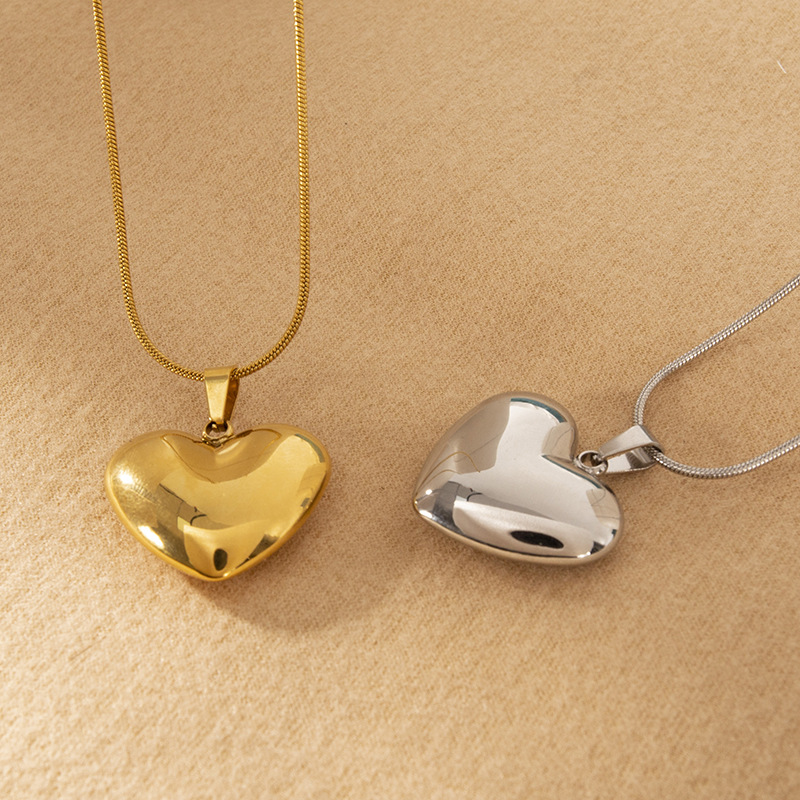 简约时尚心形不锈钢项链 女士金色心形吊坠项链