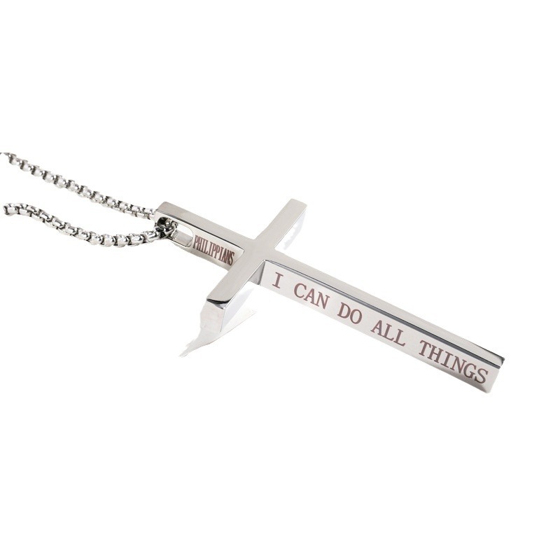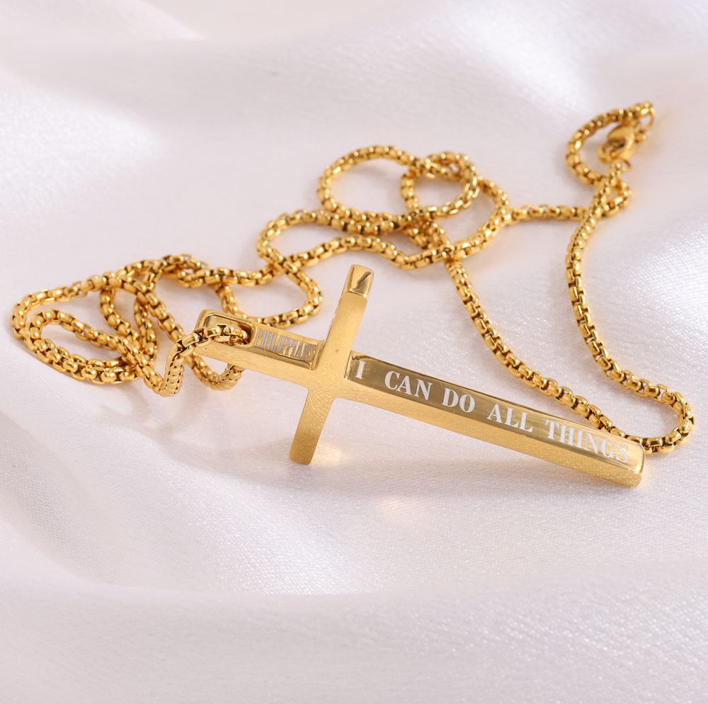 "英文字母金色不锈钢时尚链条基督教钩数字复古十字架项链"