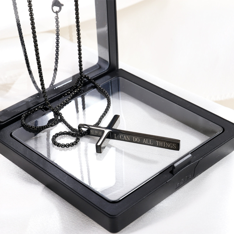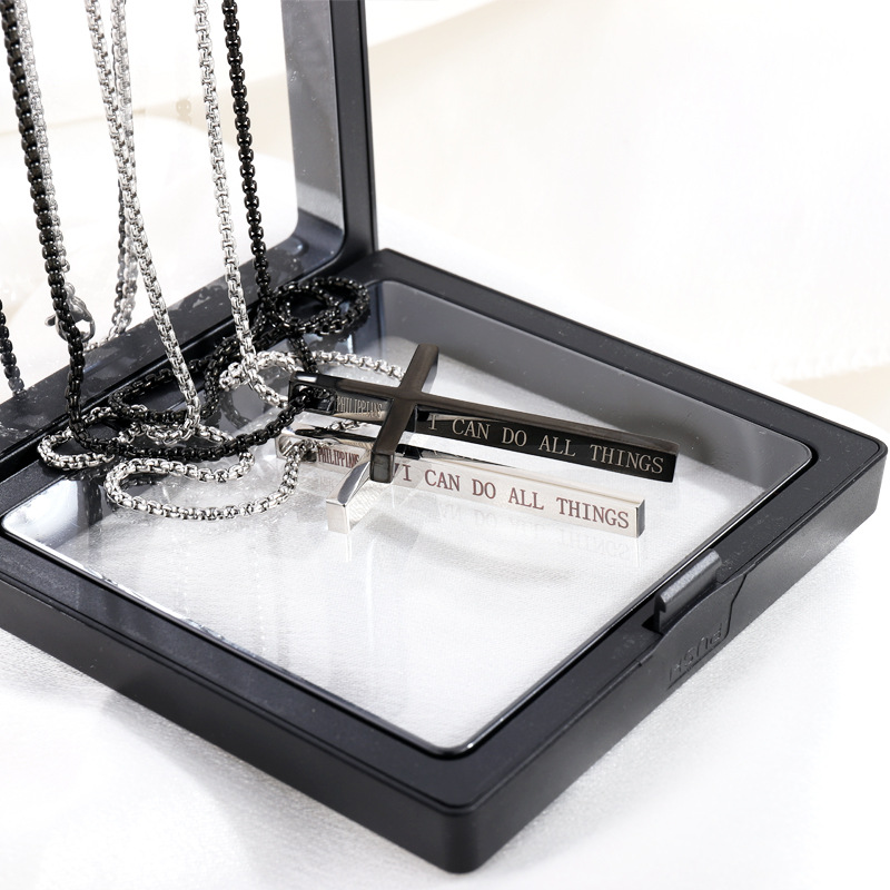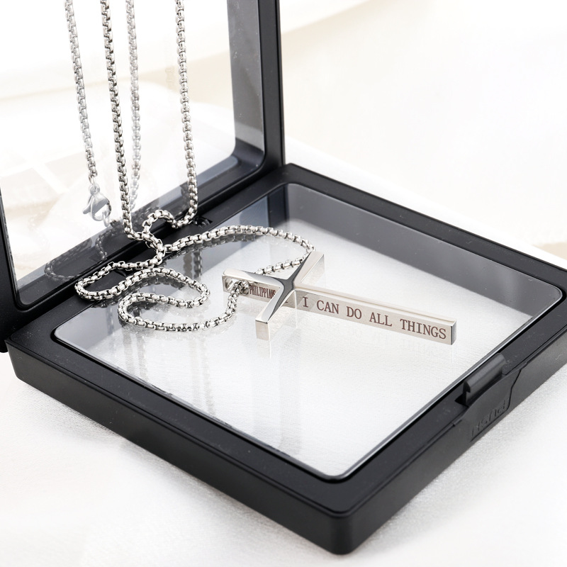 英文字母金色不锈钢时尚链条基督教钩数字复古十字架项链