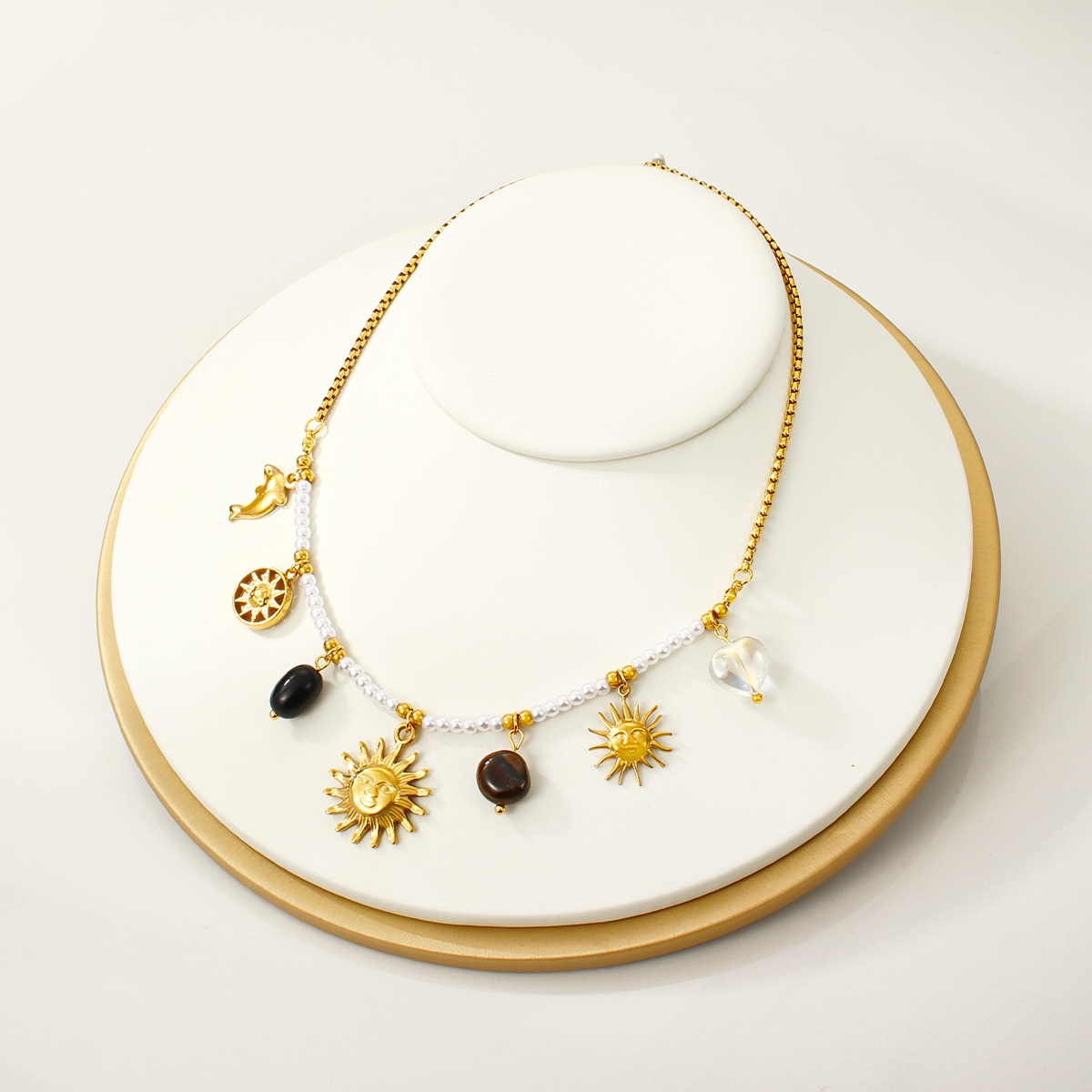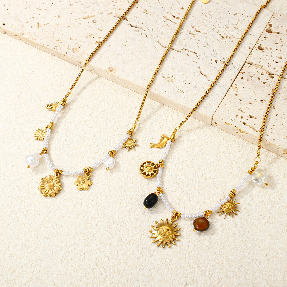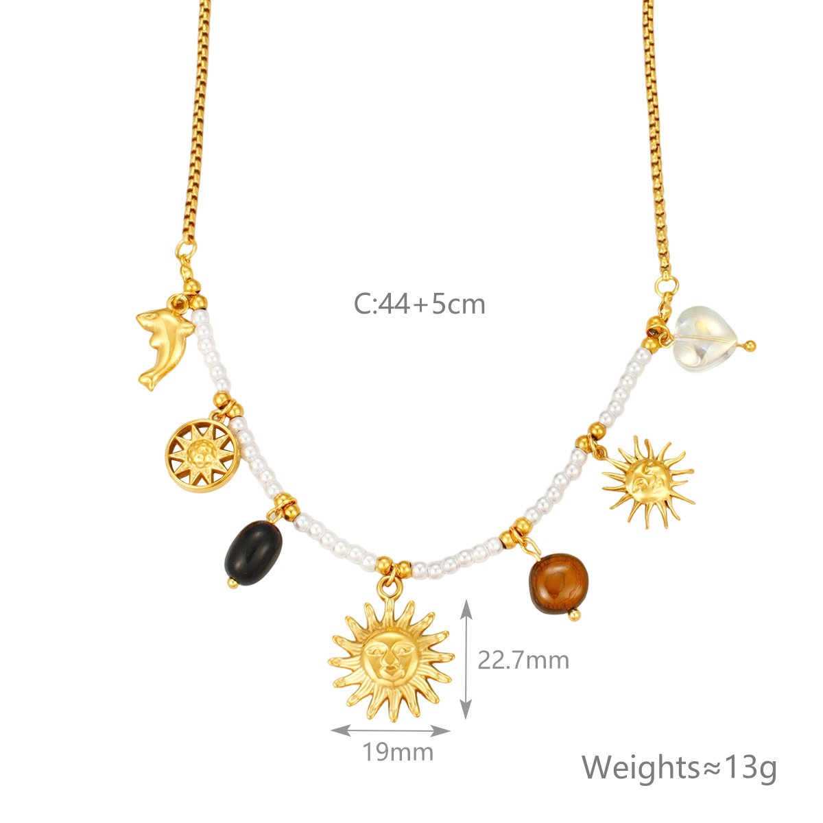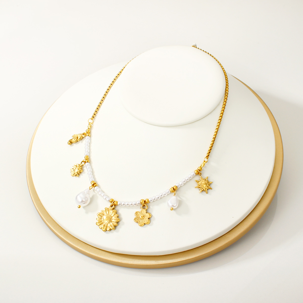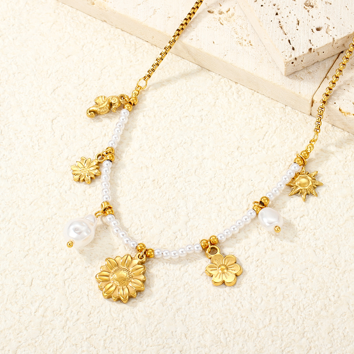 "时尚向日葵吊坠项链不锈钢材质18K镀金链条"