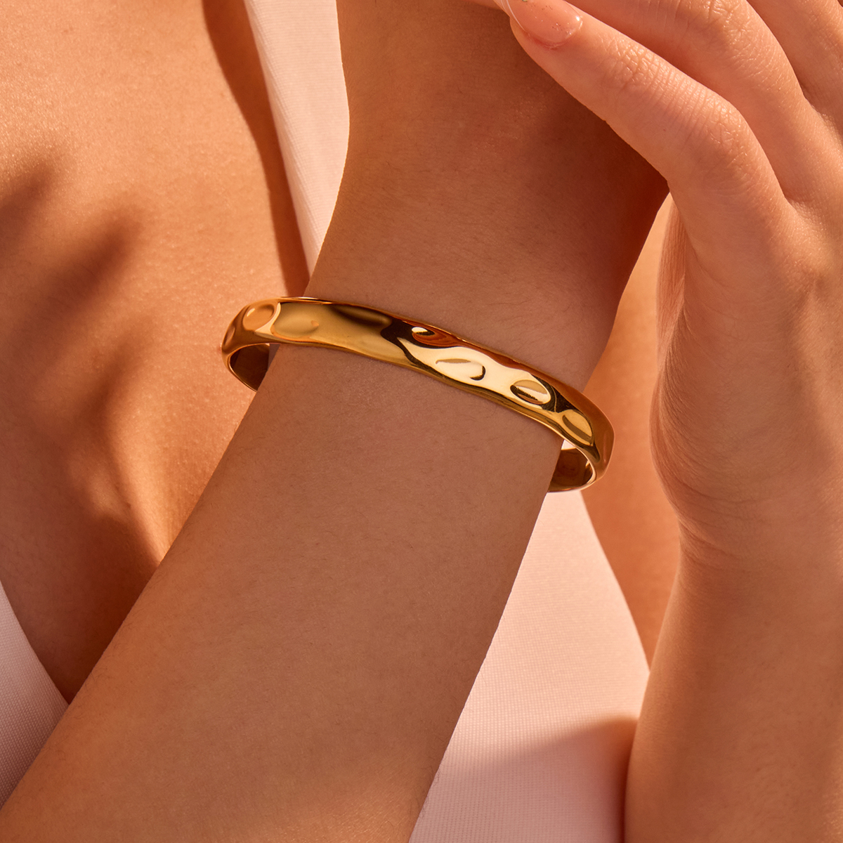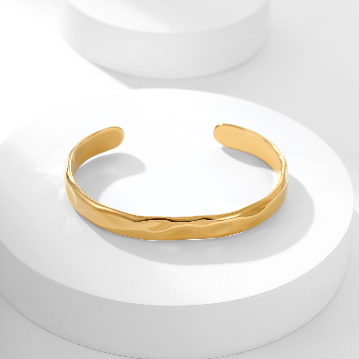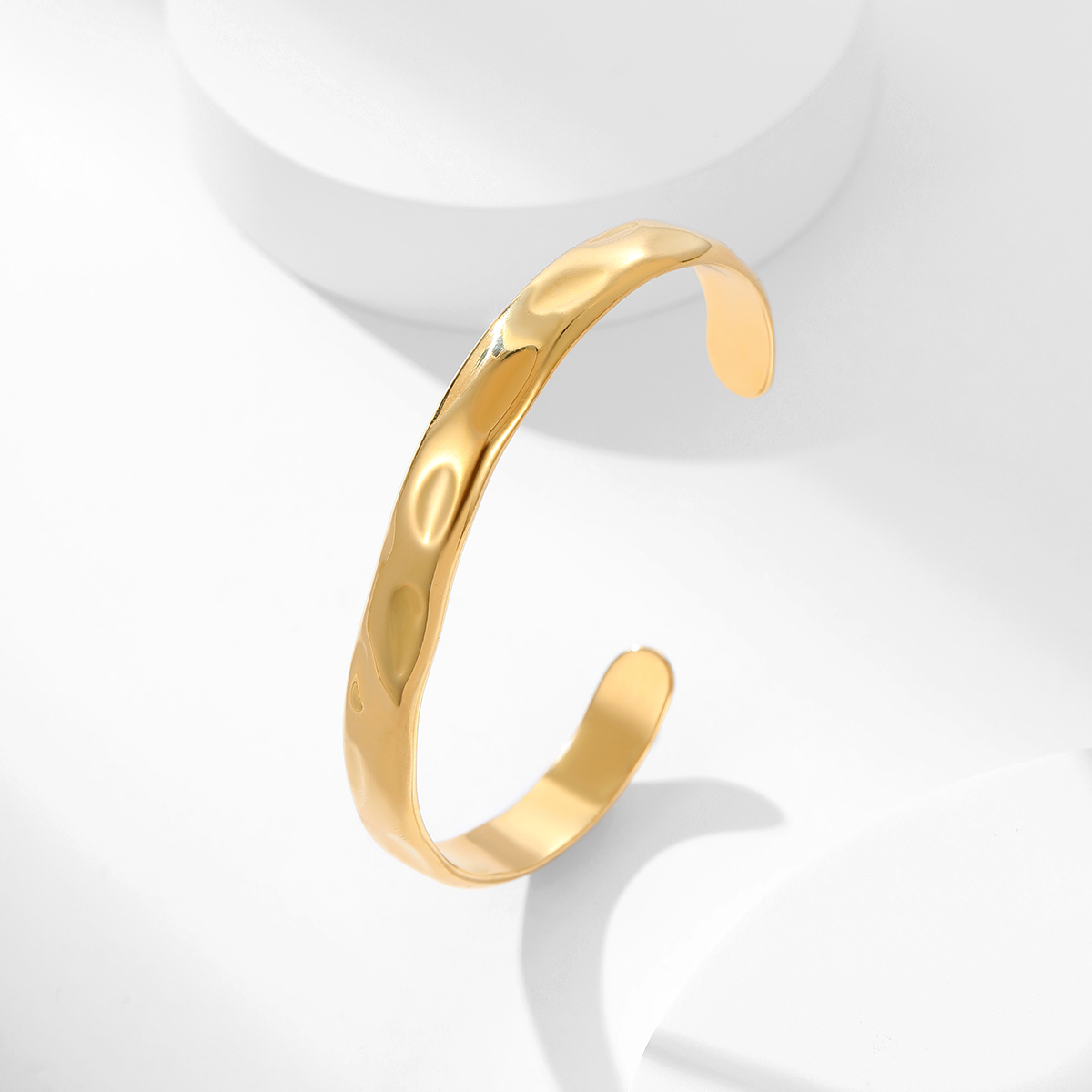 "时尚手镯18K镀金防水锤纹开口手镯"