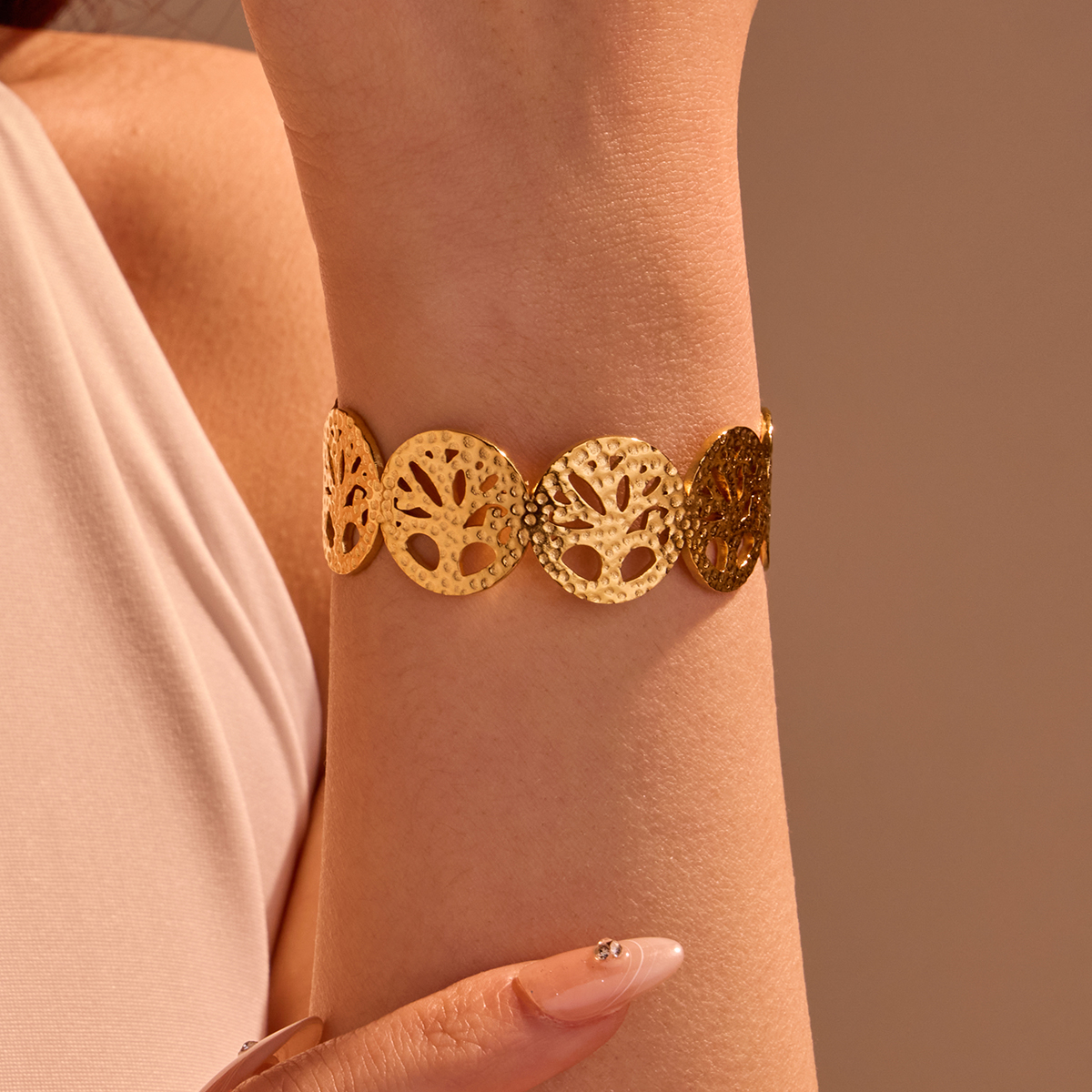 "批发女士镂空开口不锈钢手镯"