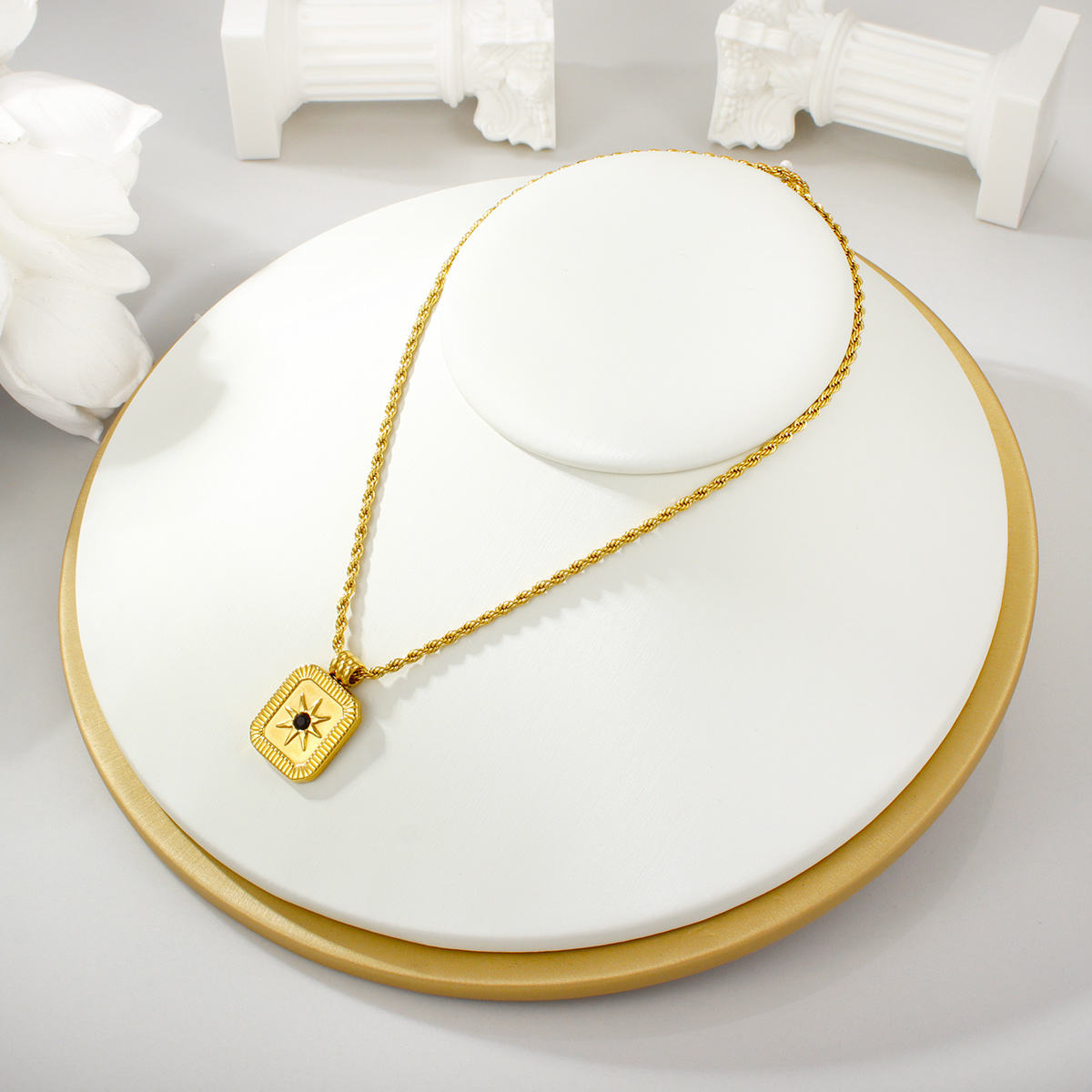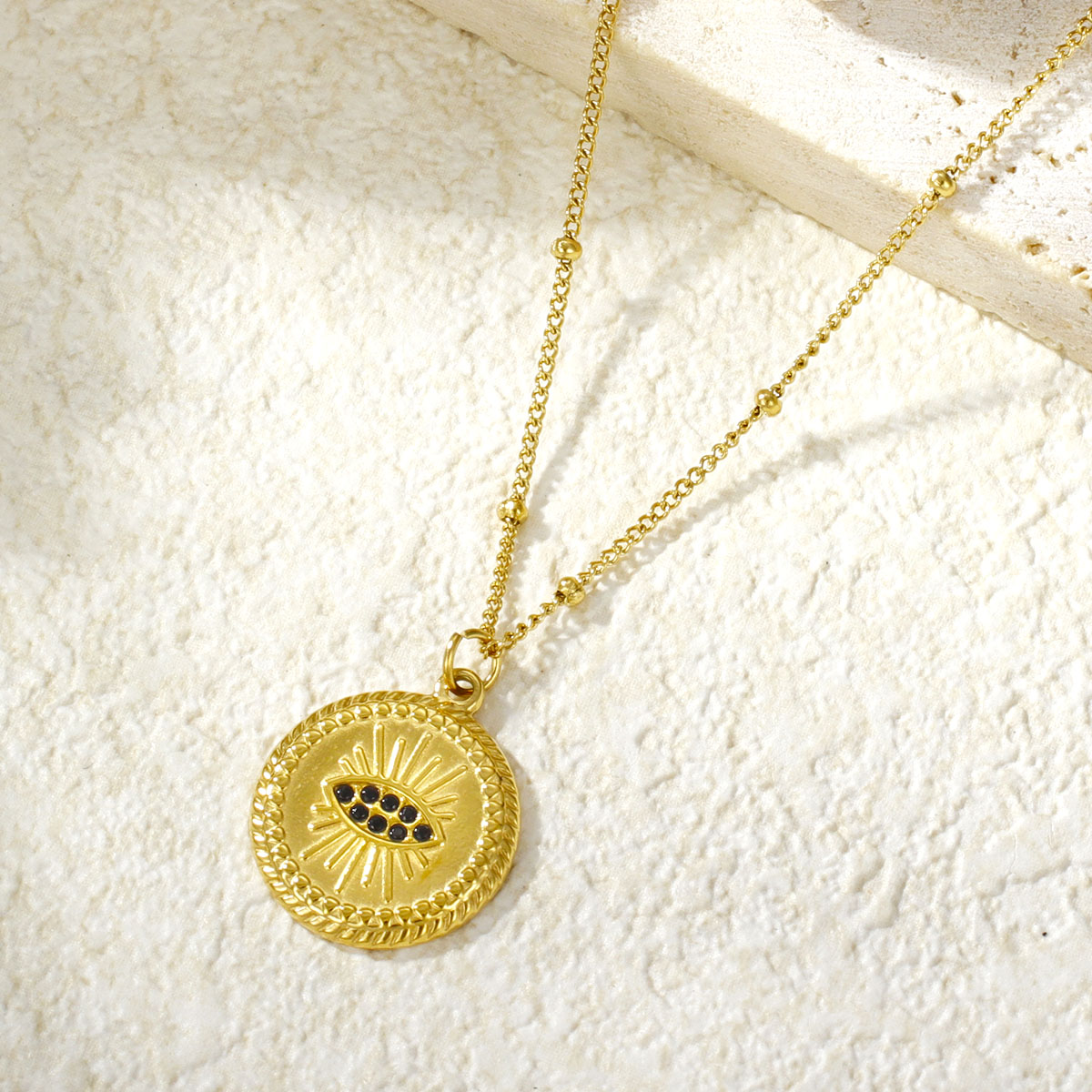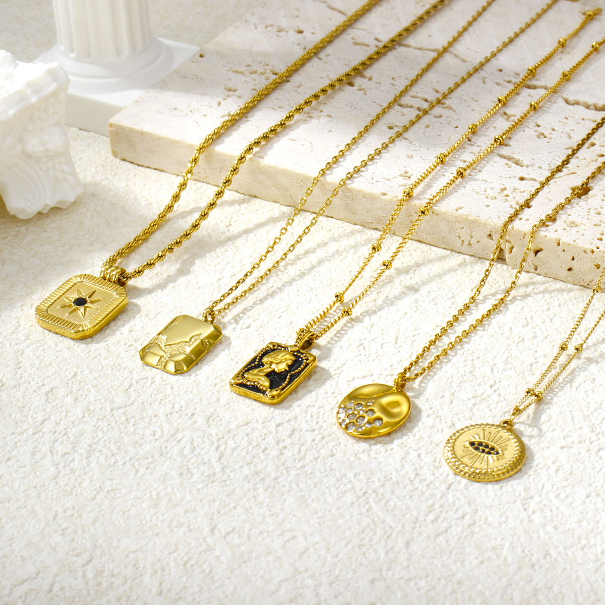 复古18k镀金不锈钢链女王浮雕吊坠