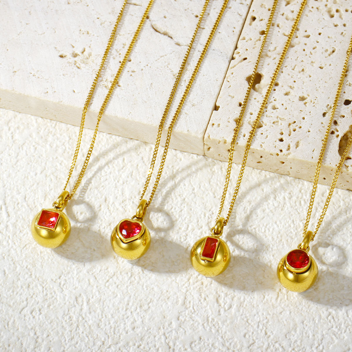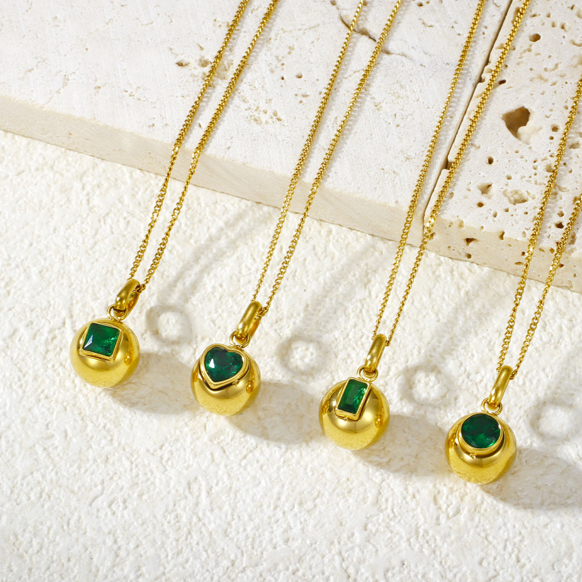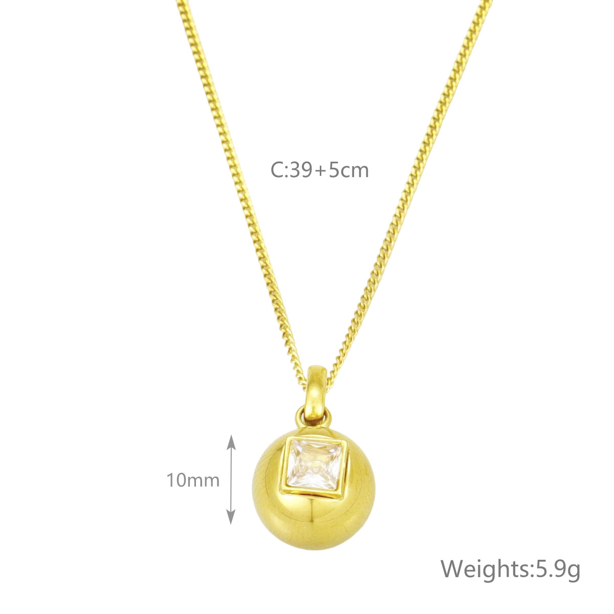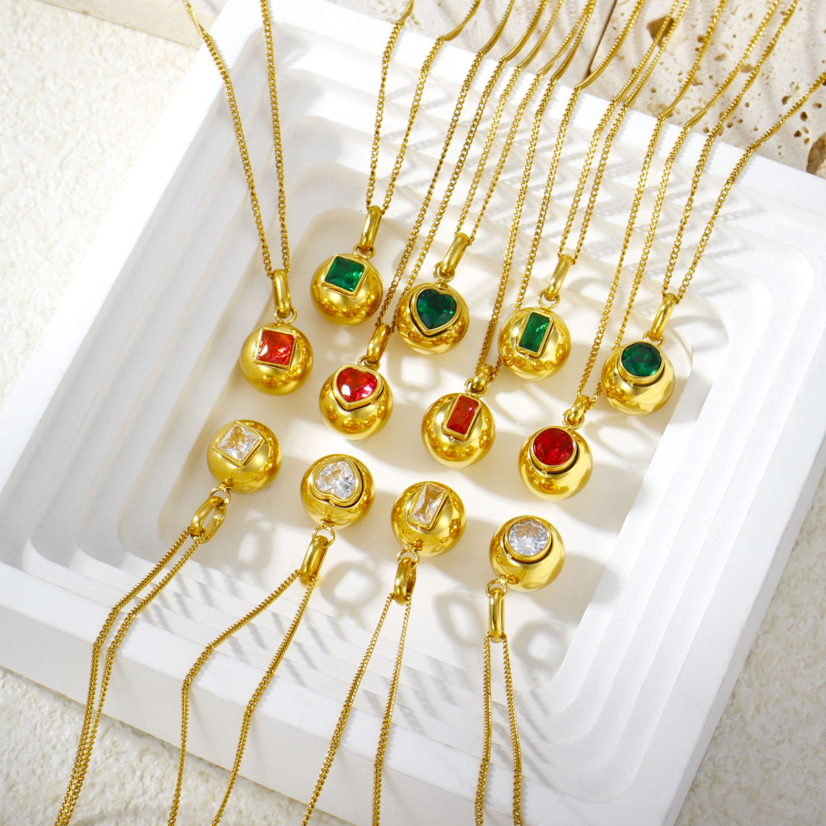 "18K镀金不锈钢彩色方形心形锆石圆形球形吊坠项"