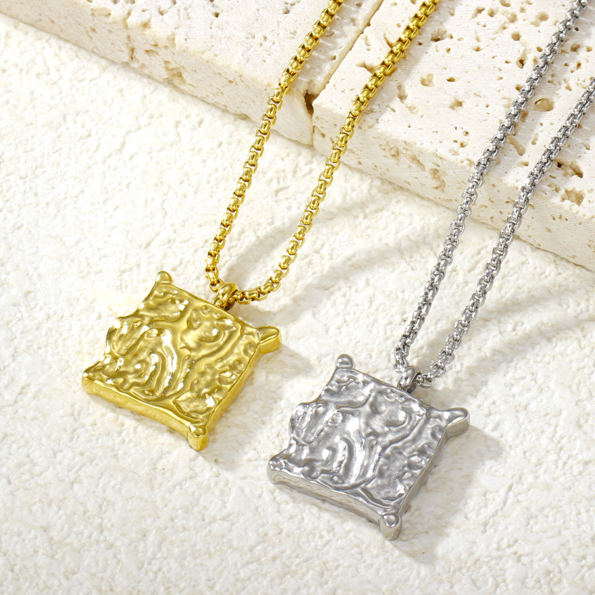 镀银镀金可调节链条方形吊坠项链