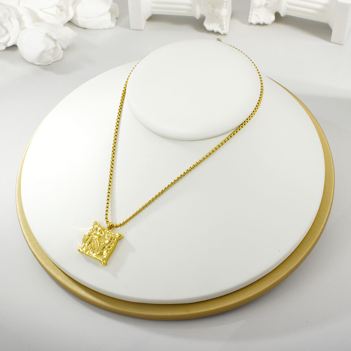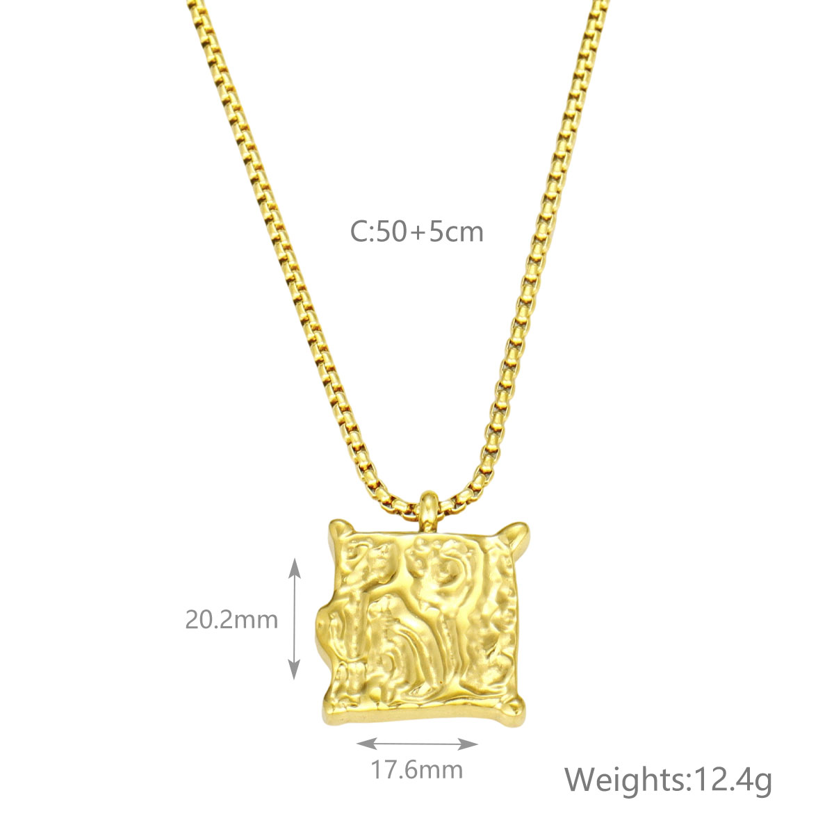 "镀银镀金可调节链条方形吊坠项链"