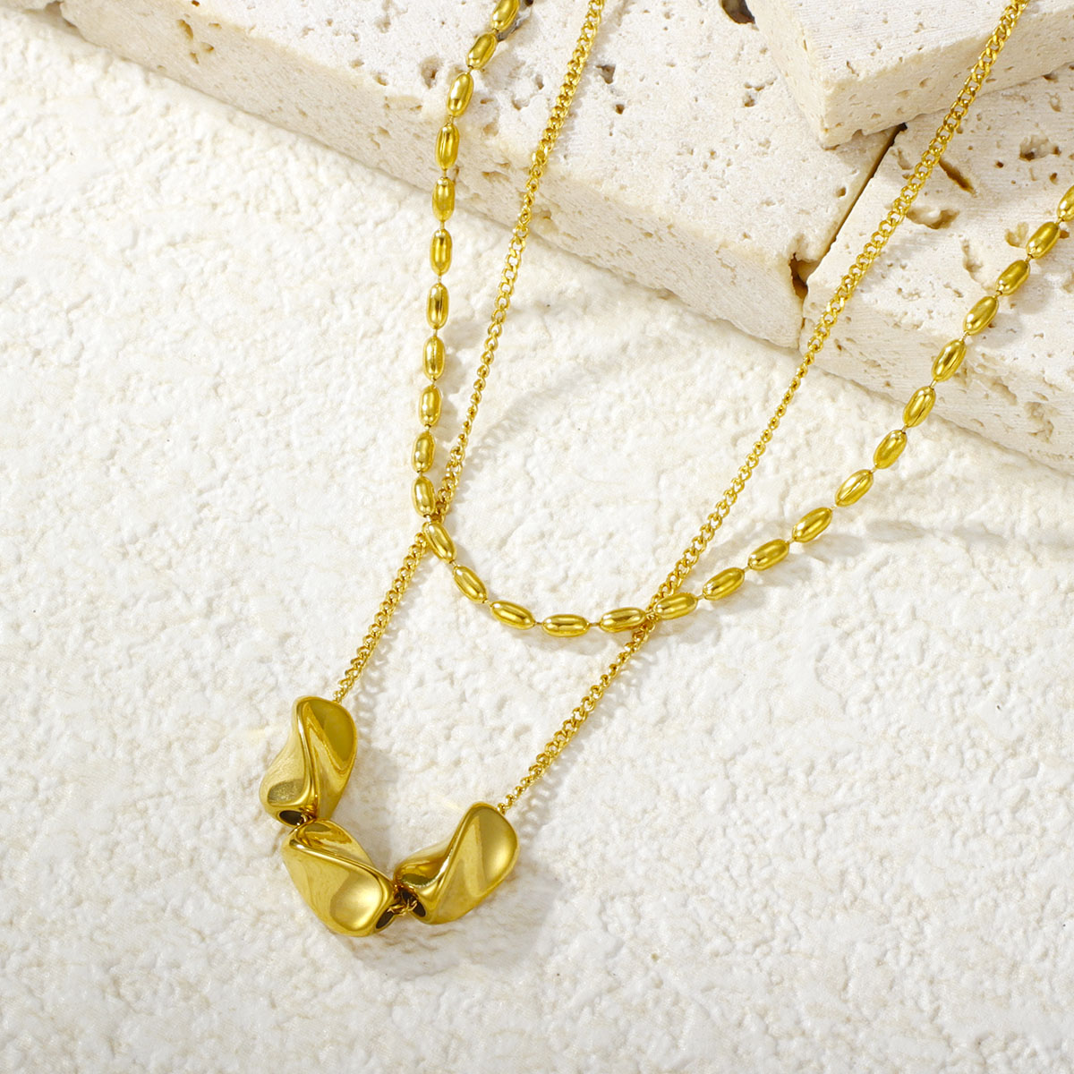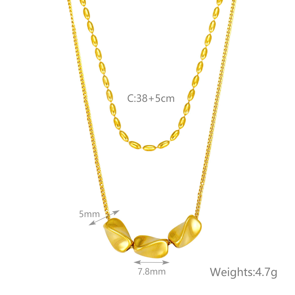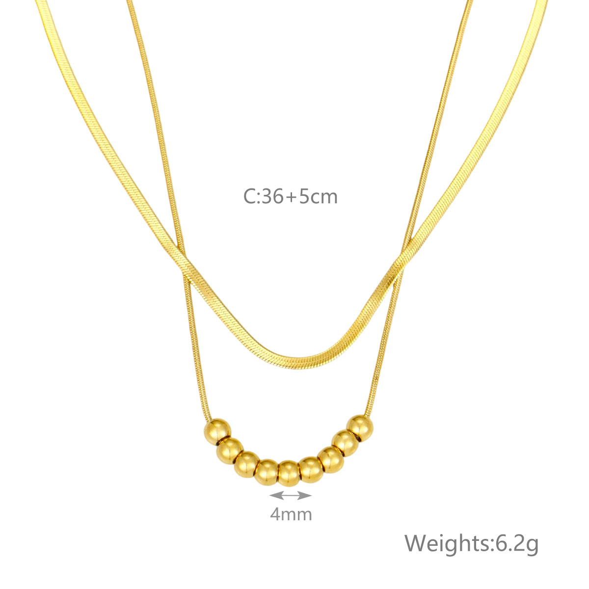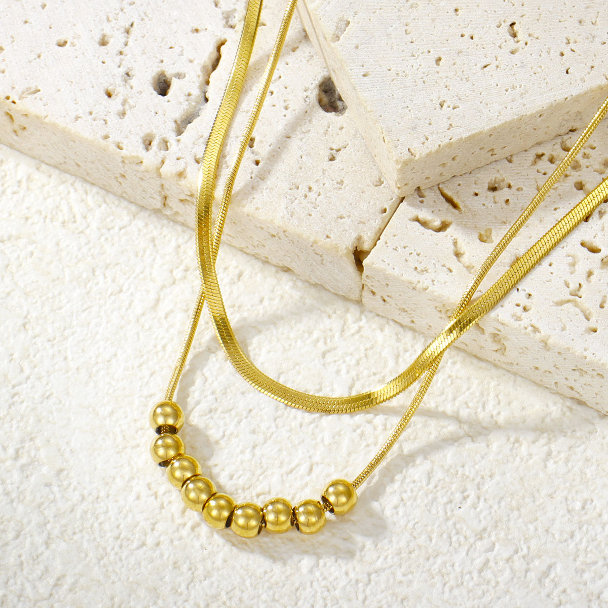 "极简几何椭圆珠首饰套装项链不锈钢双层项链"