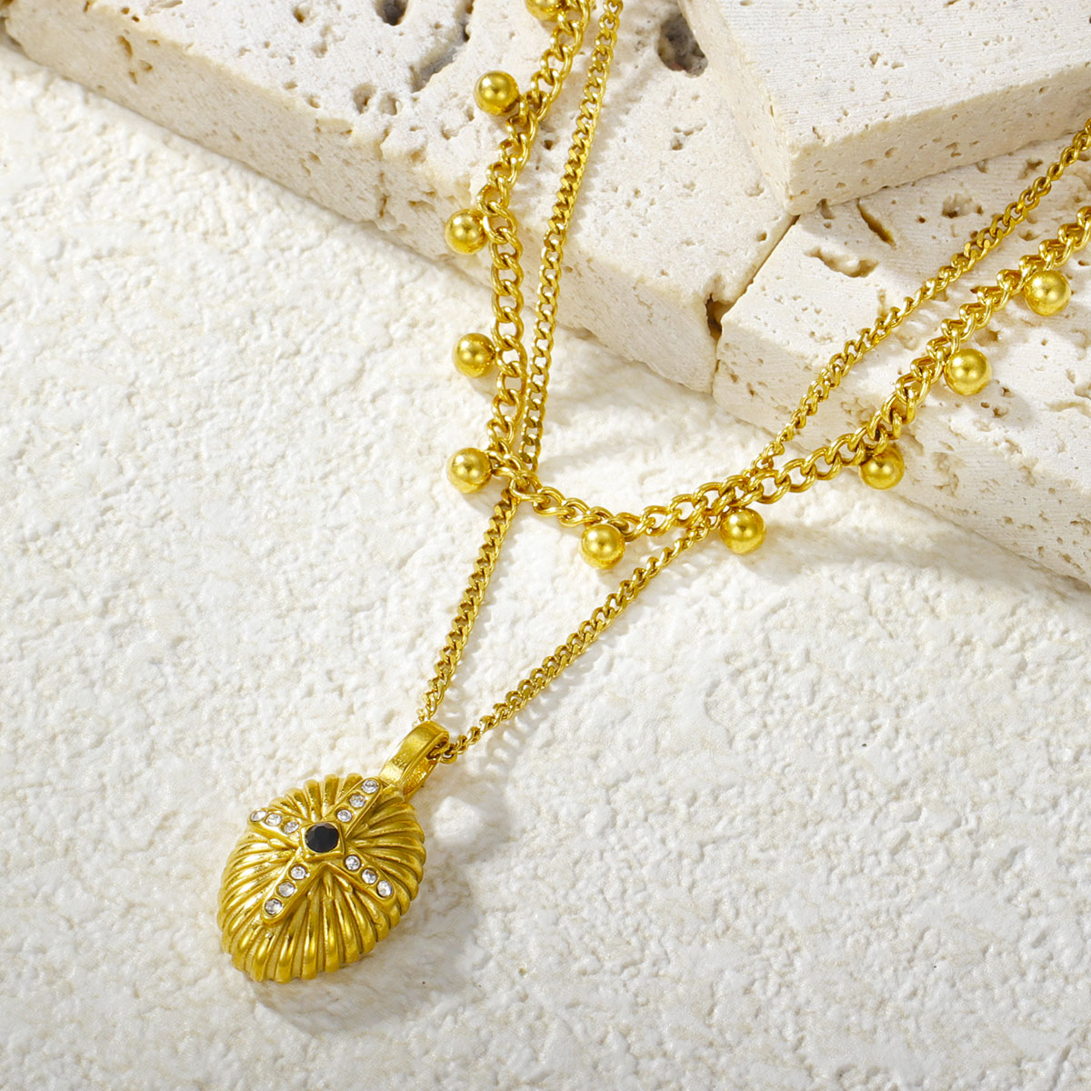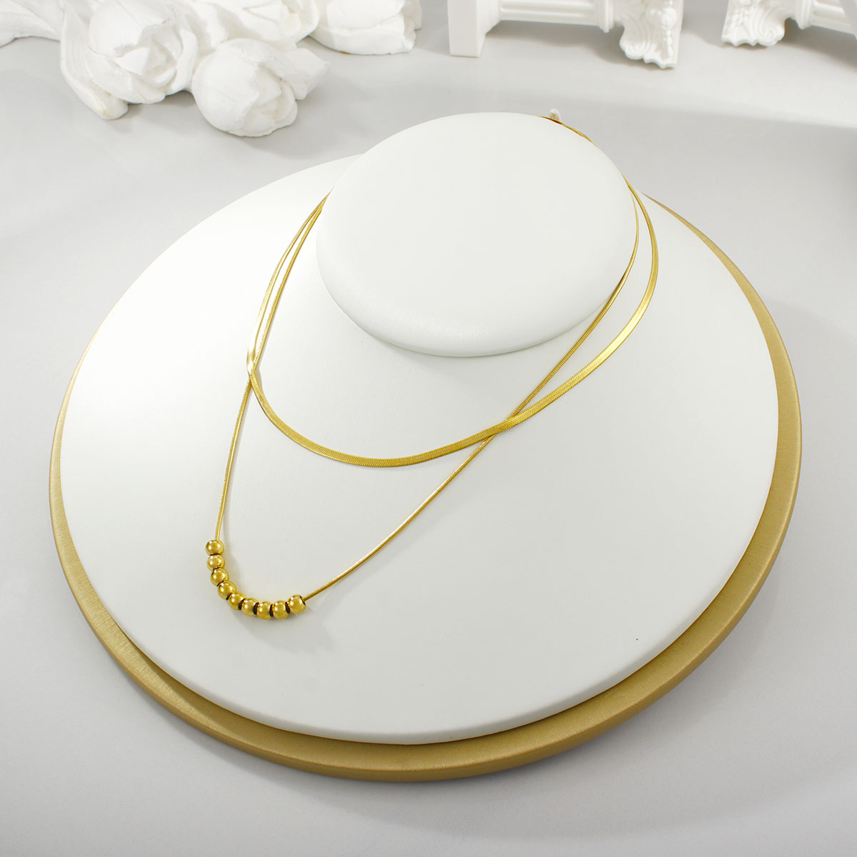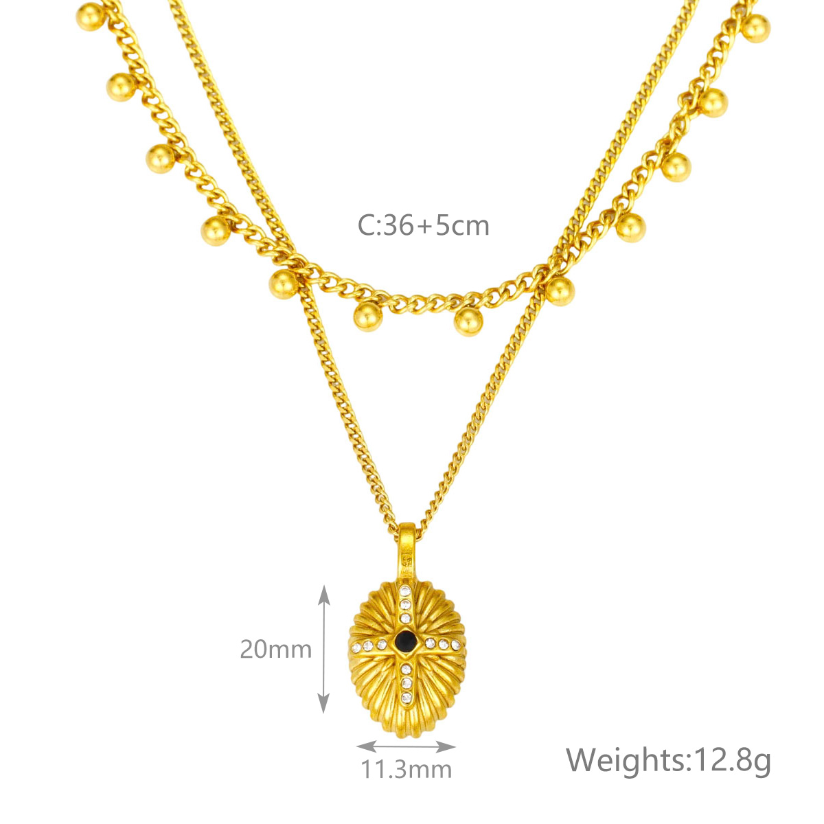 "极简几何椭圆珠首饰套装项链不锈钢双层项链"