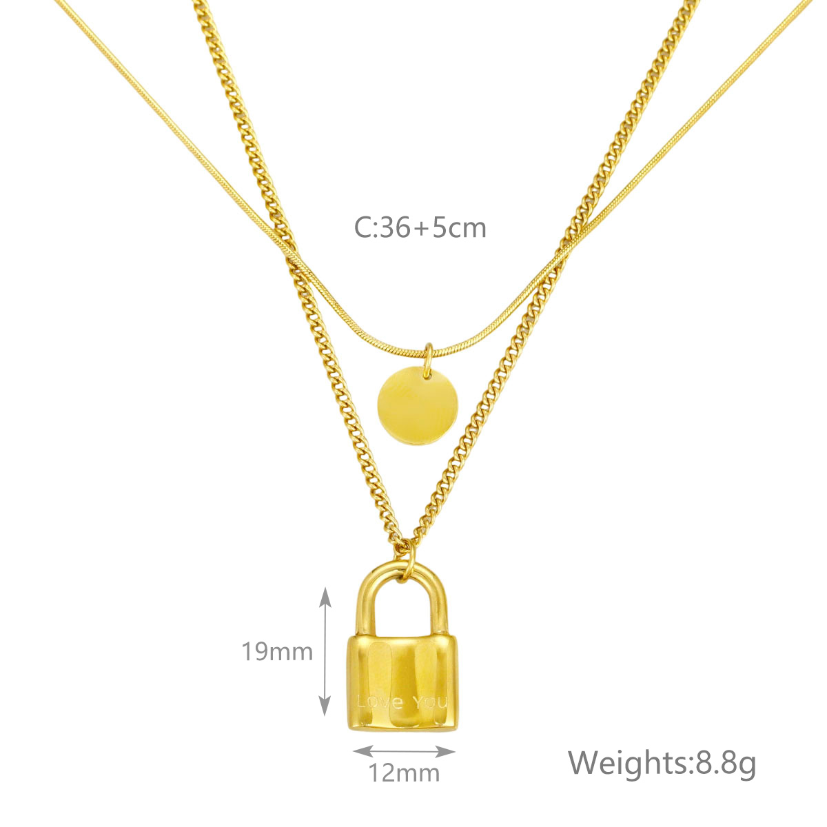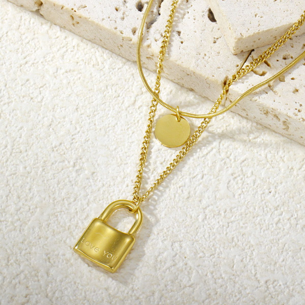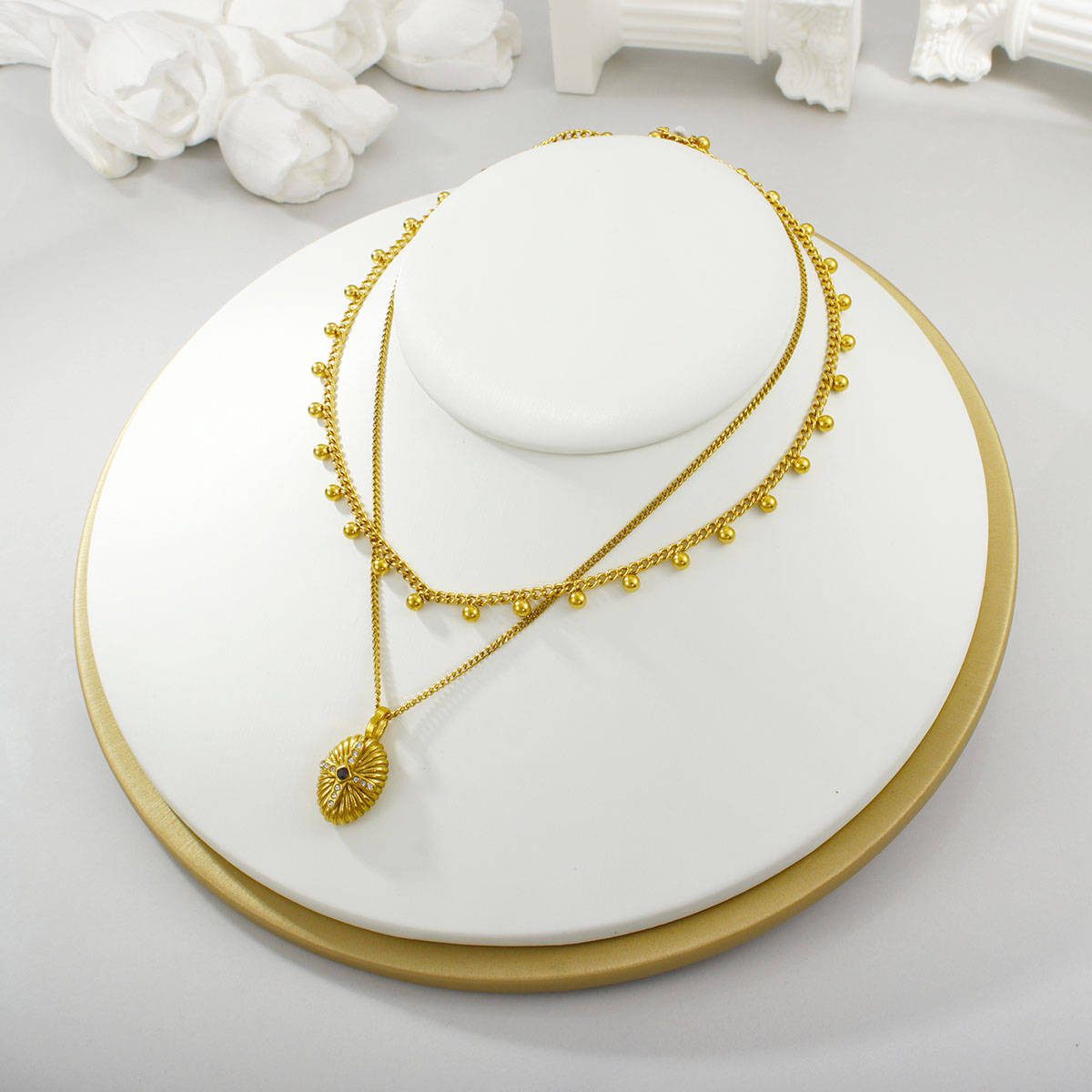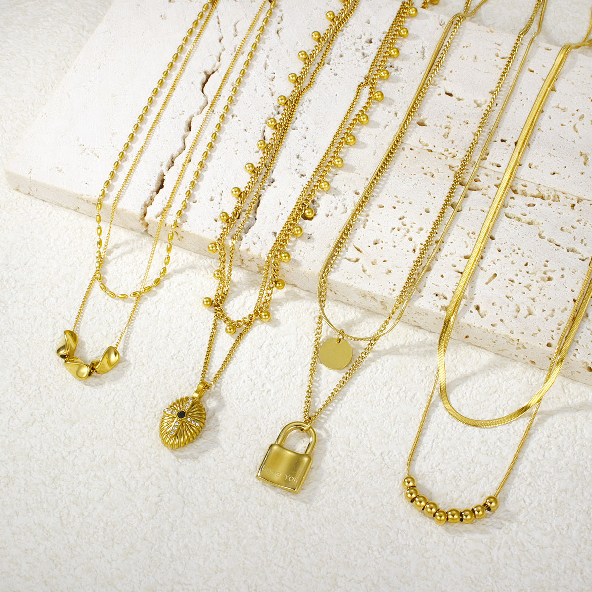 "极简几何椭圆珠首饰套装项链不锈钢双层项链"