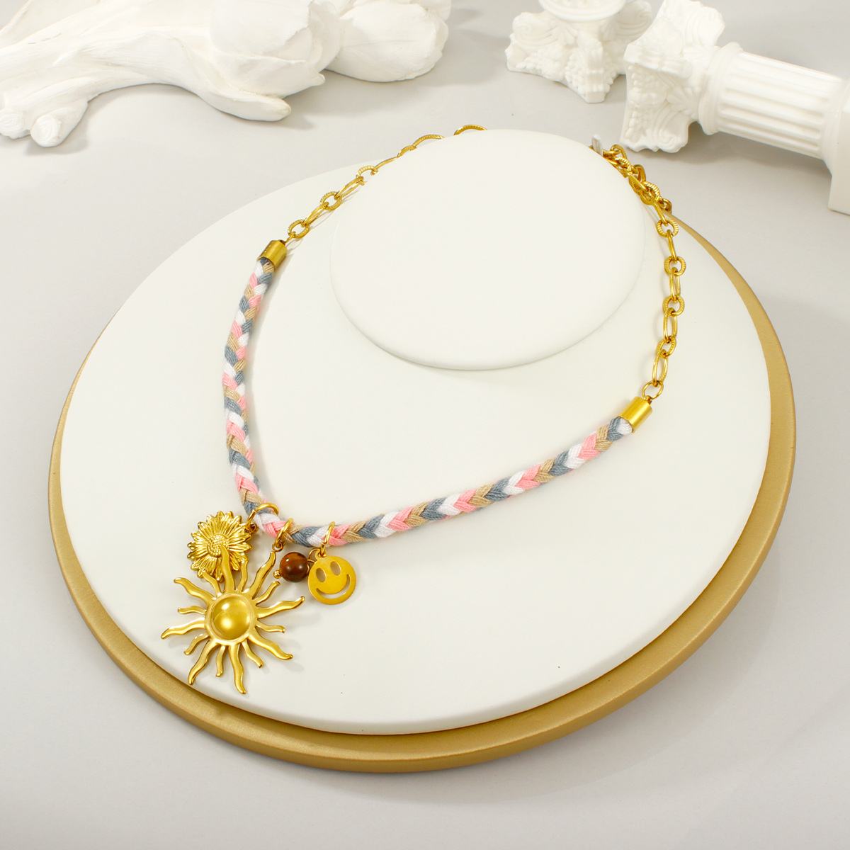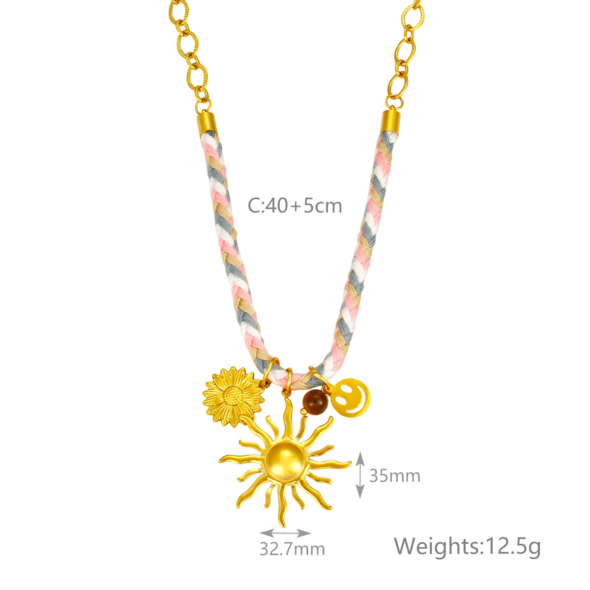 18K镀金PVD不锈钢链条拼接项链,防水太阳雏菊花朵