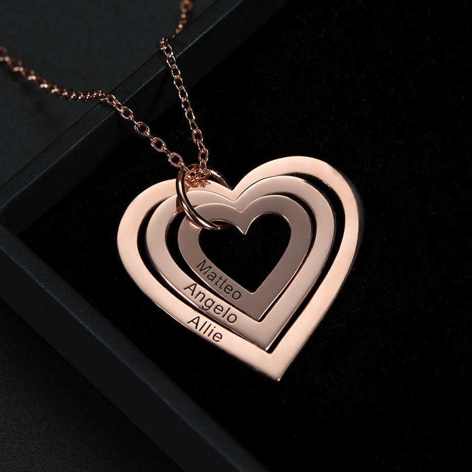 "镀18K镀金玫瑰金不锈钢心形吊坠项链可定制刻字"