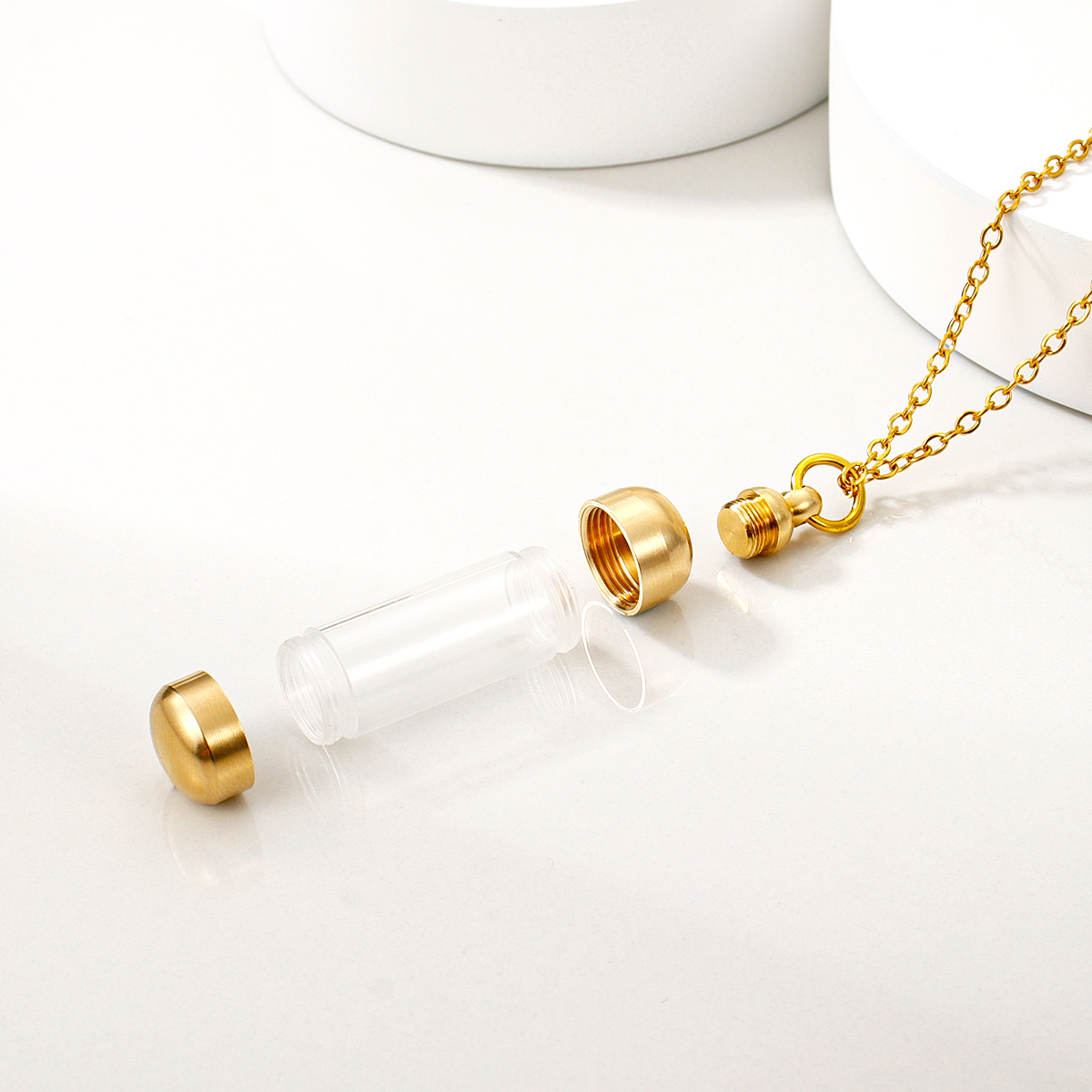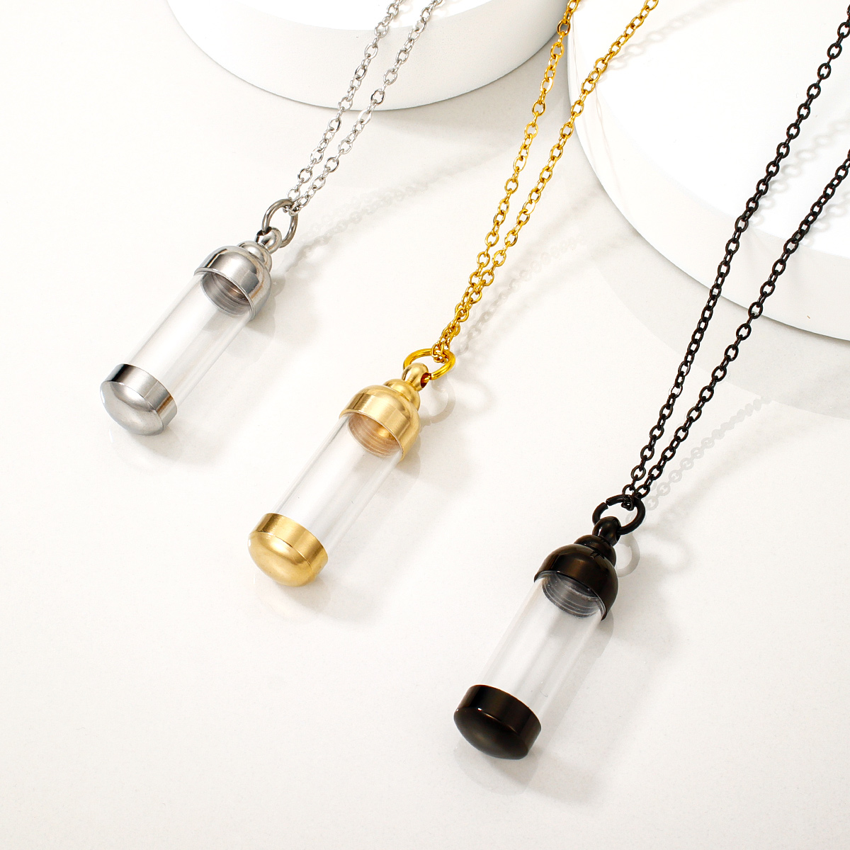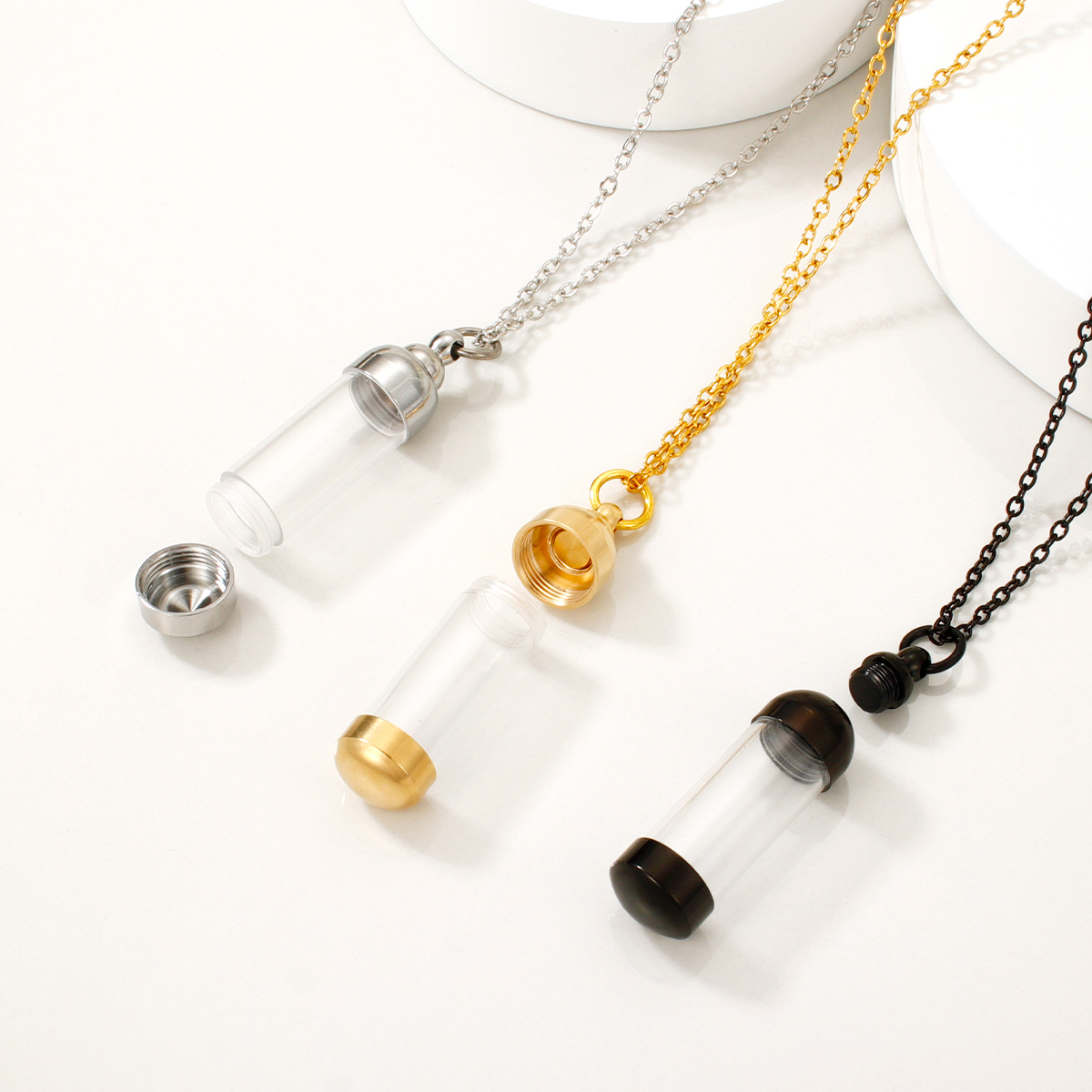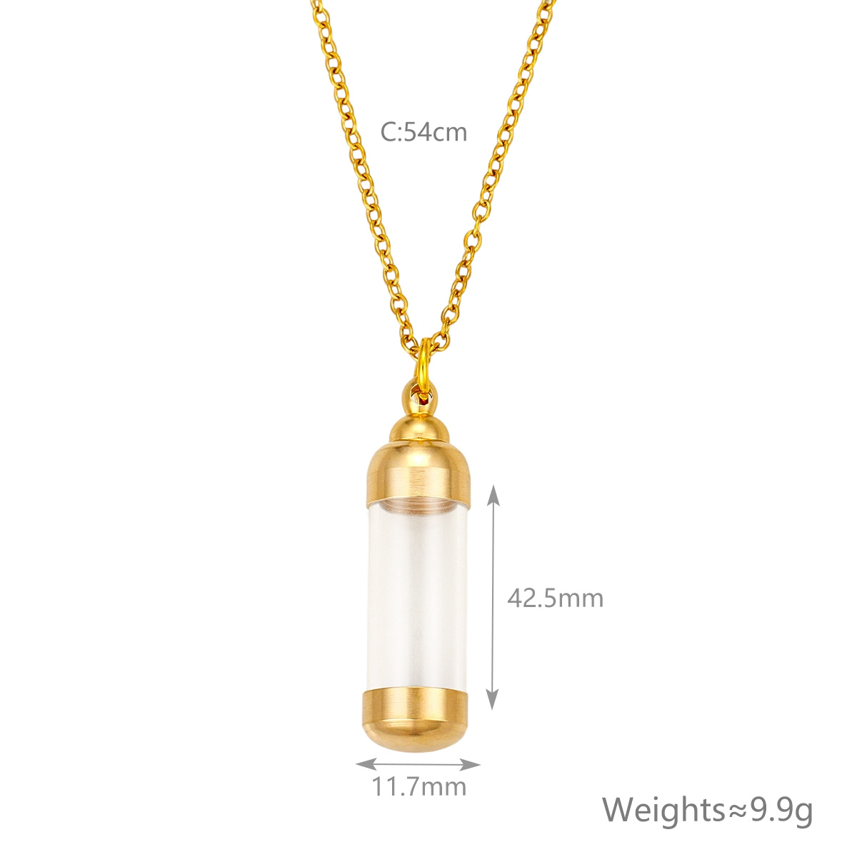 "镀金时尚长管项链 透明可开启香水瓶 不锈钢链吊坠项链"