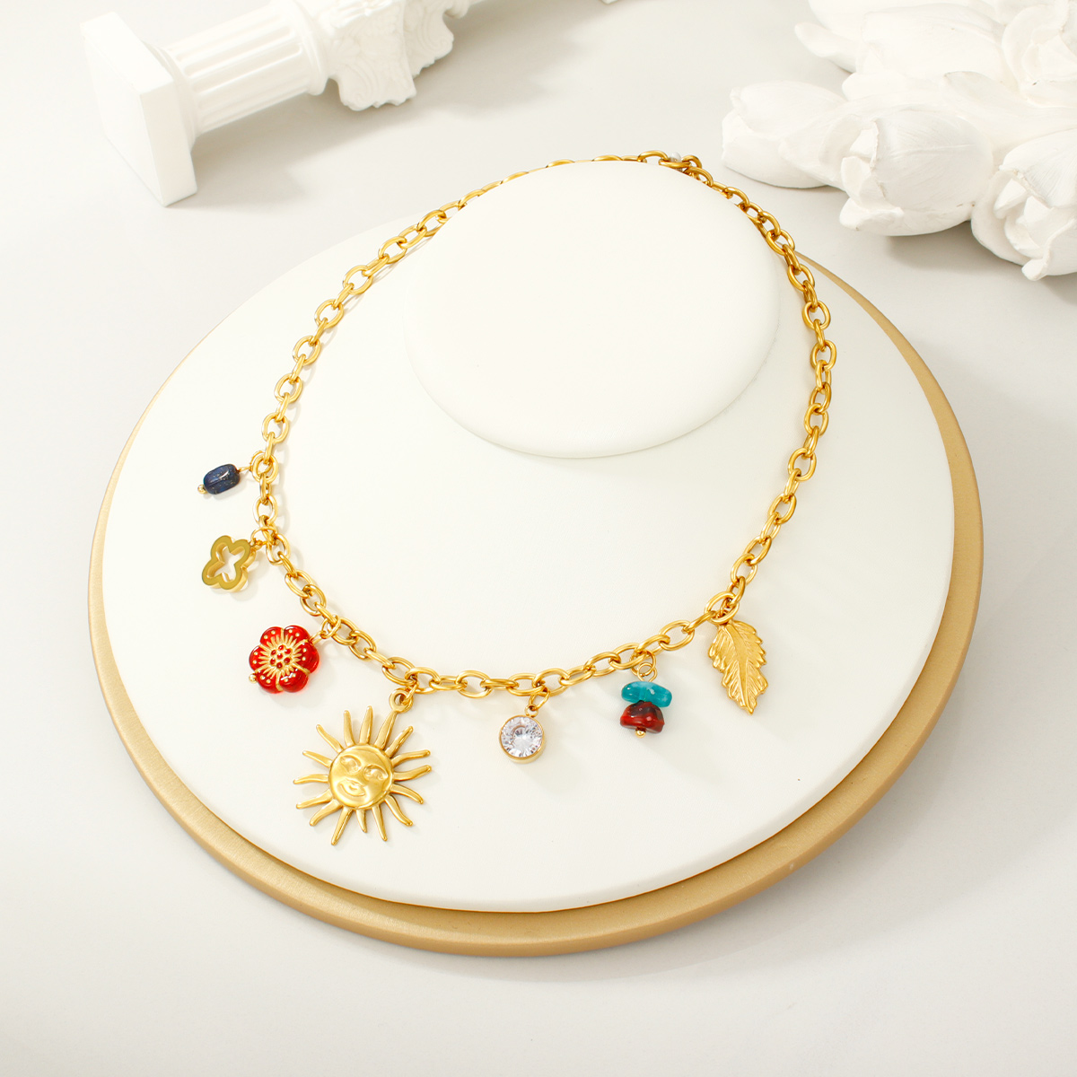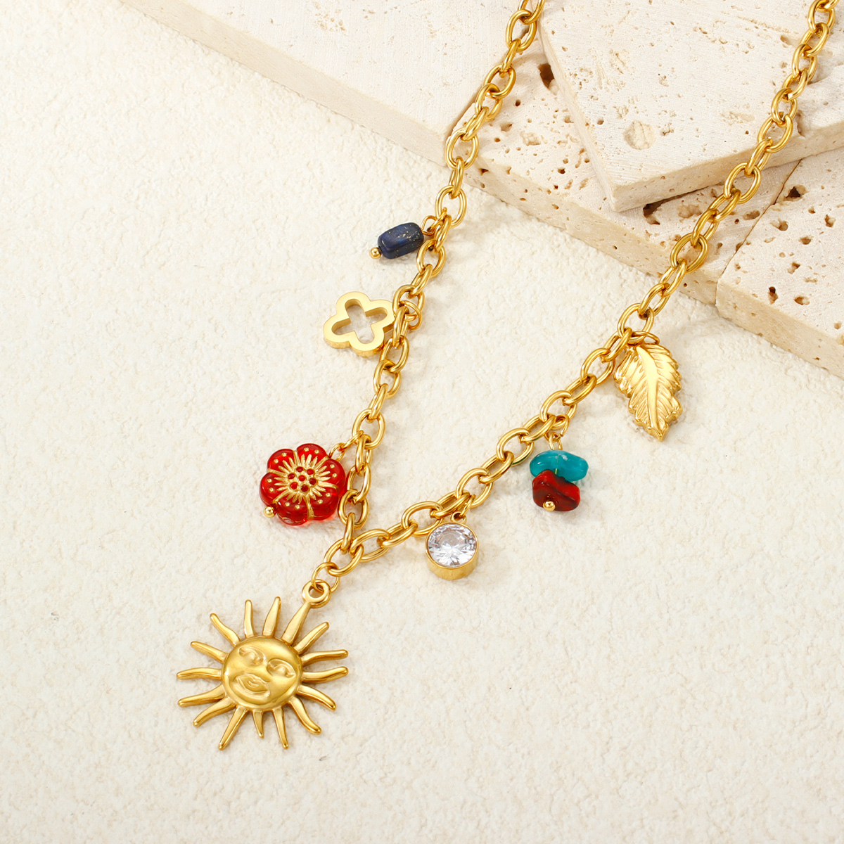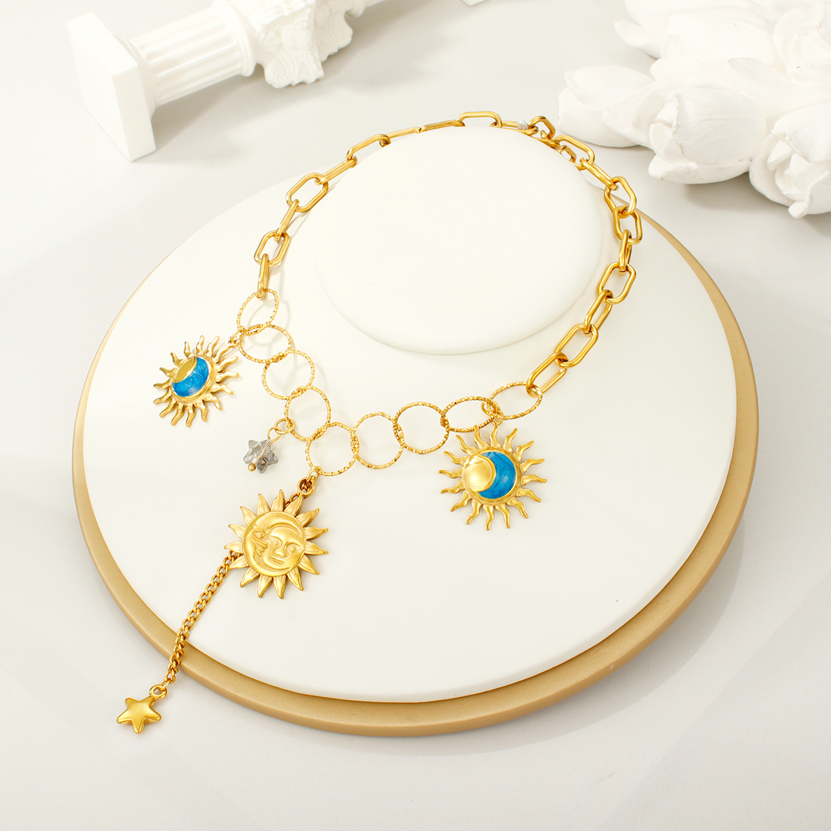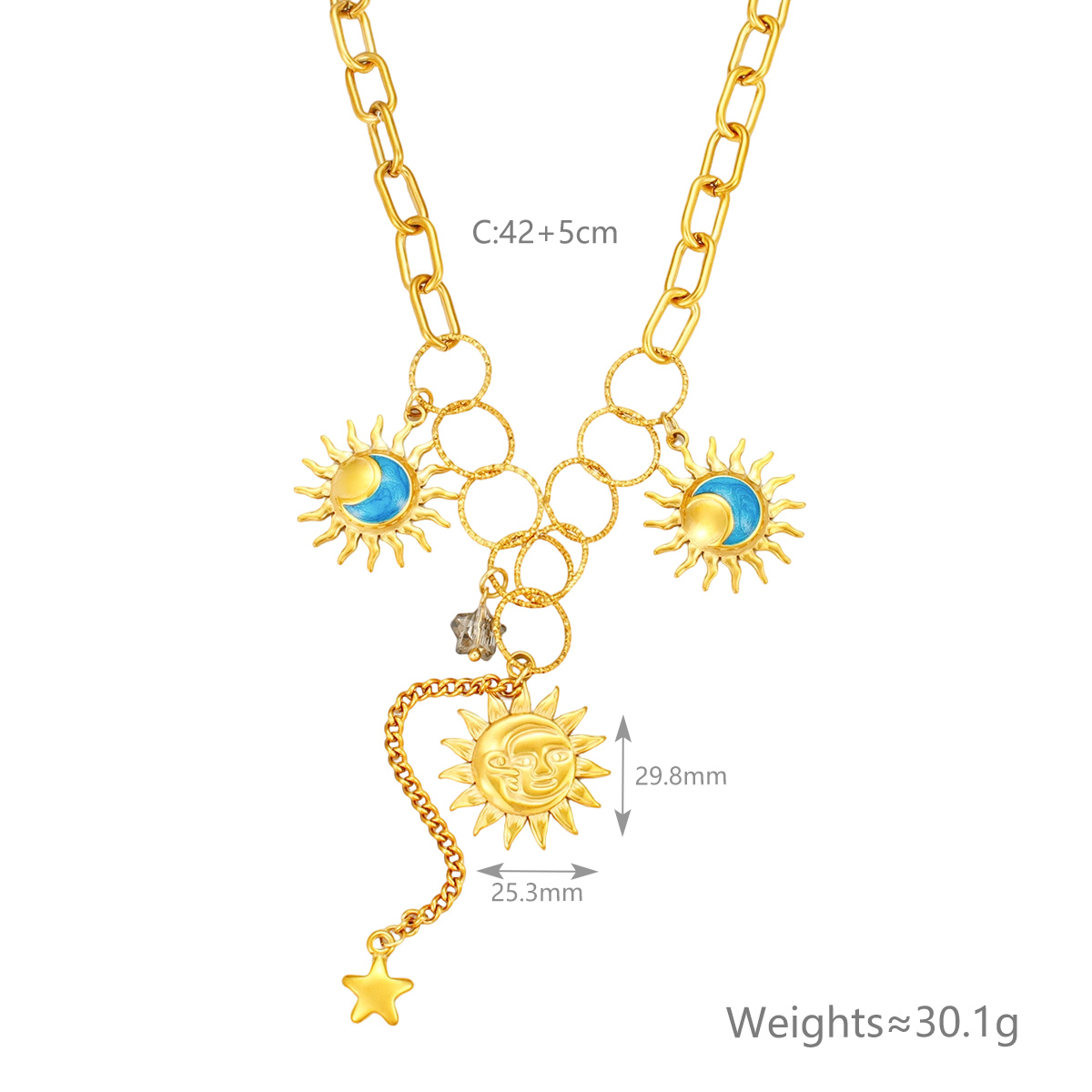 18K镀金防水日月绿松石吊坠项链