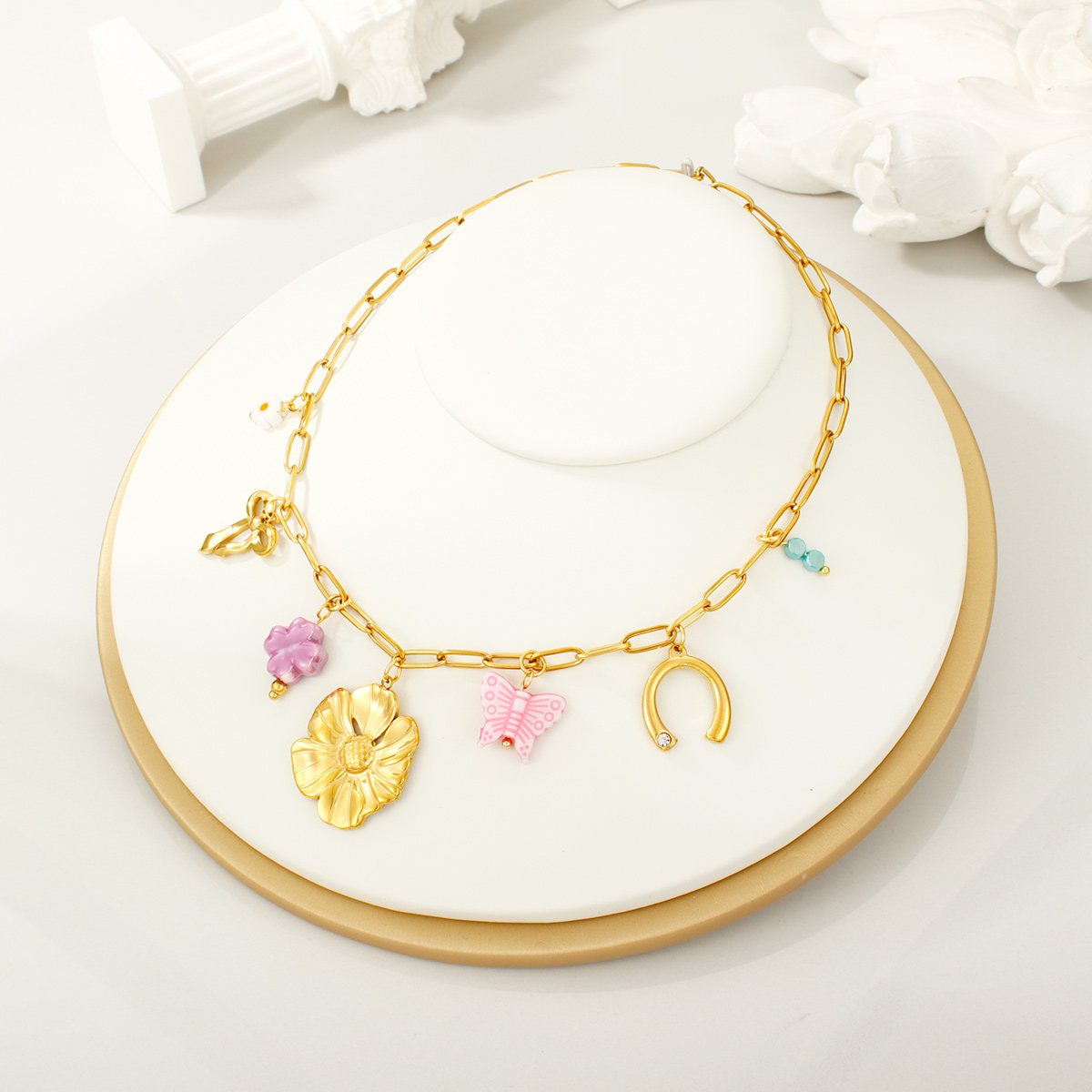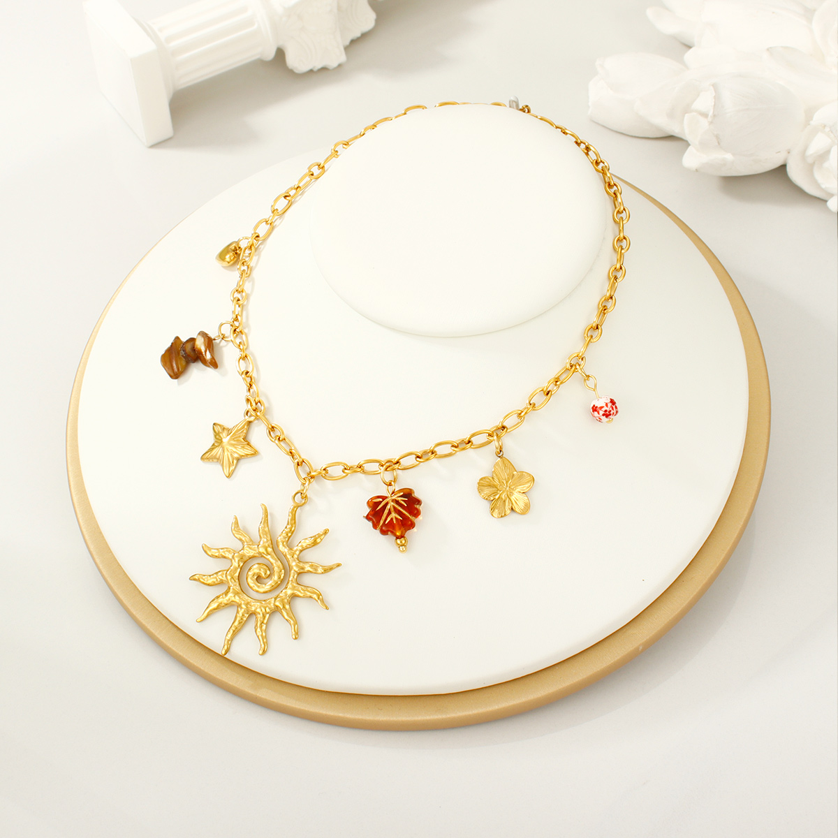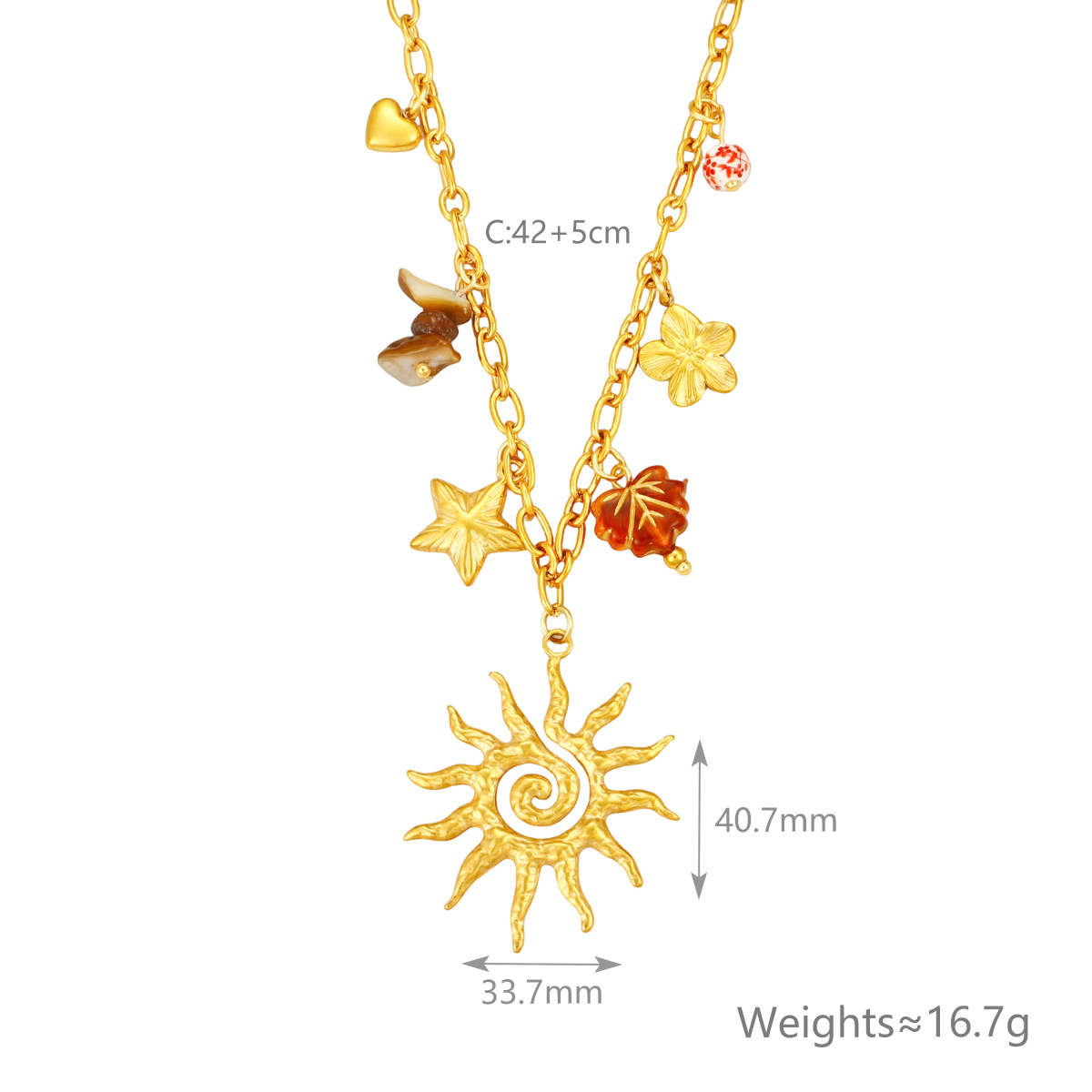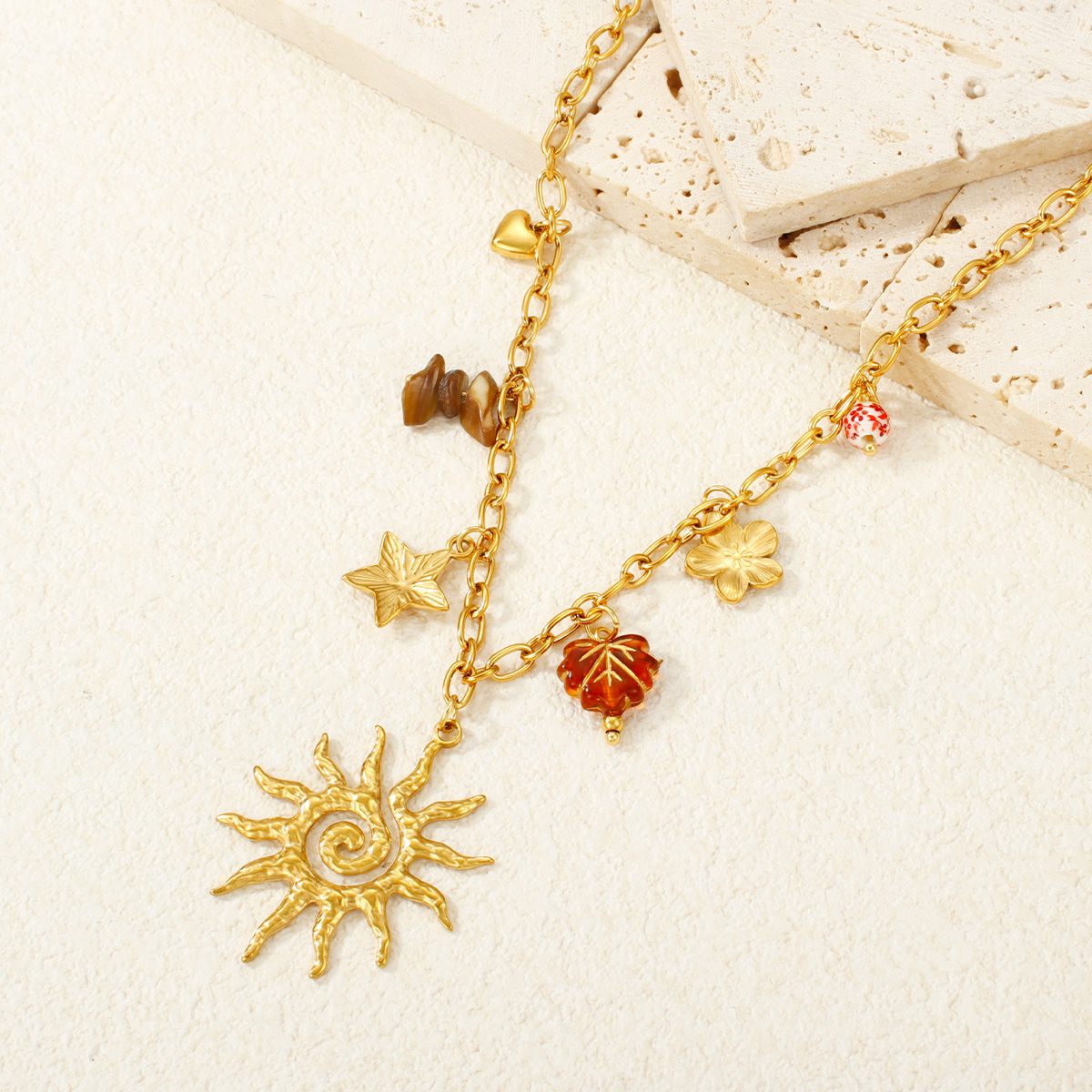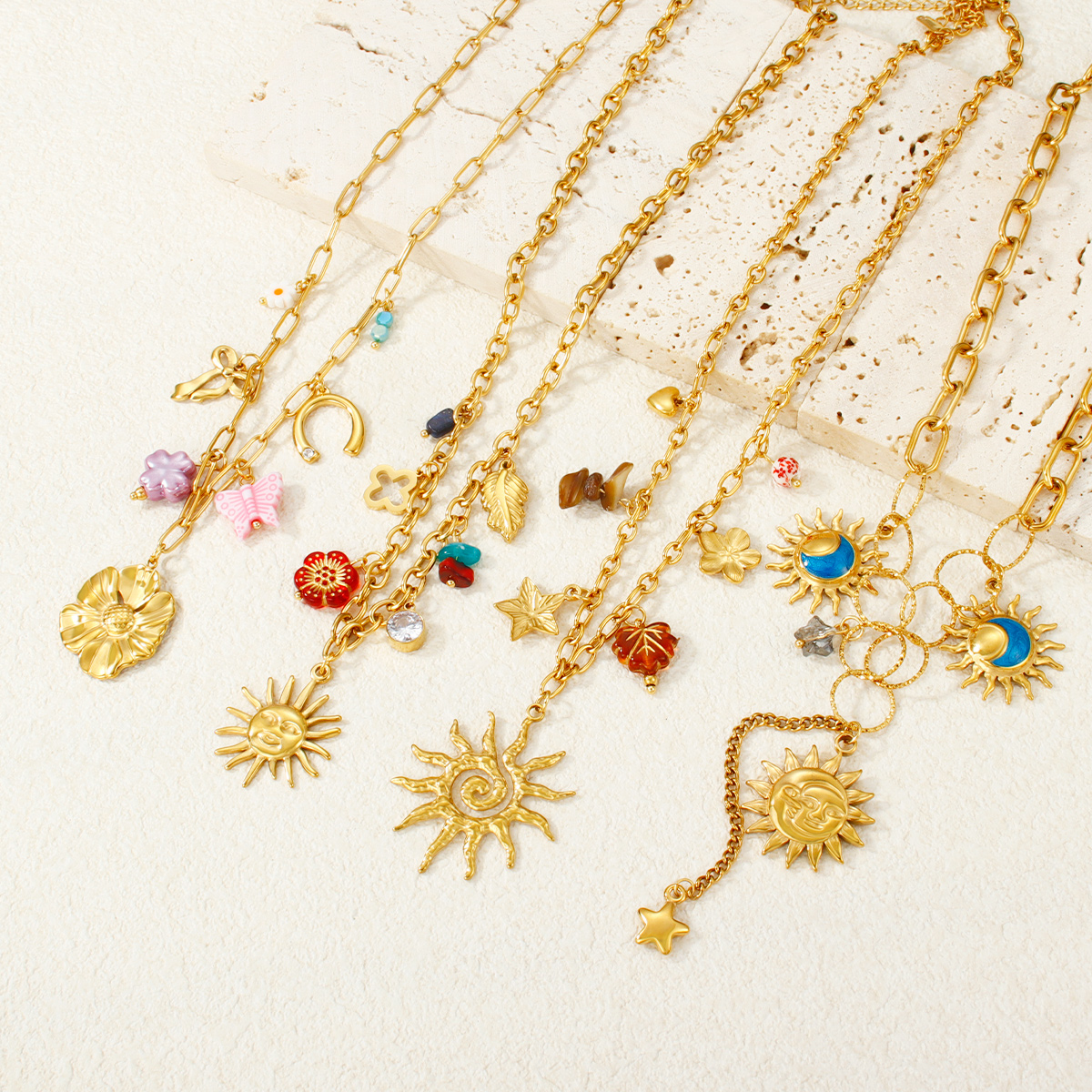 18K镀金防水日月绿松石吊坠项链