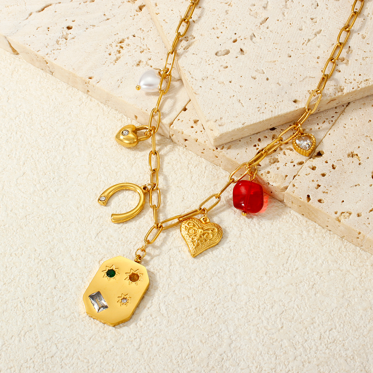 18K镀金海洋项链,防水不锈钢海星贝壳吊坠