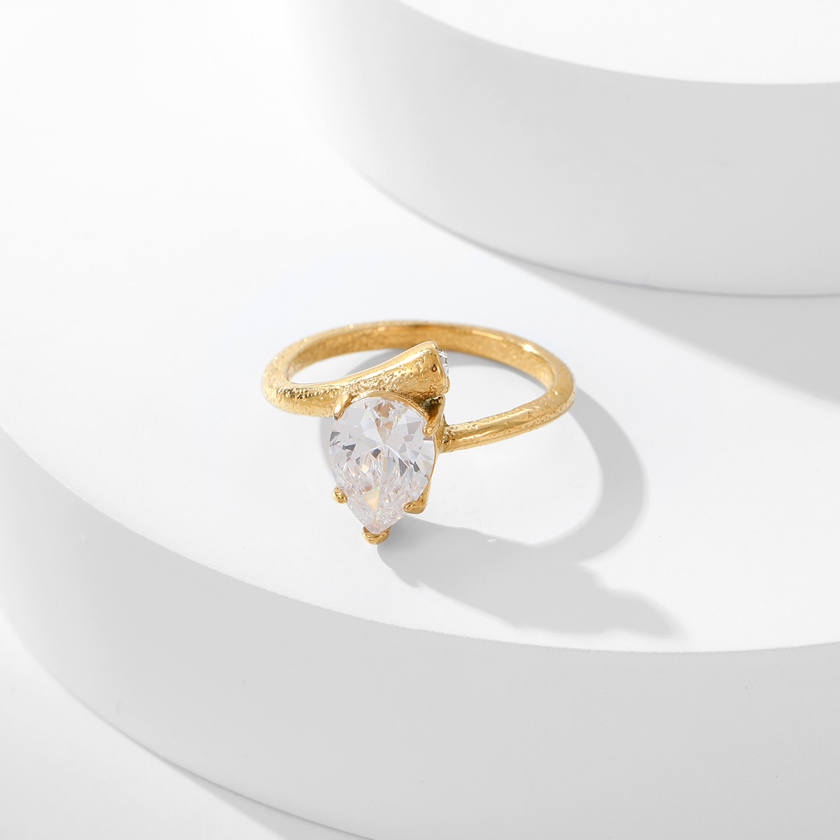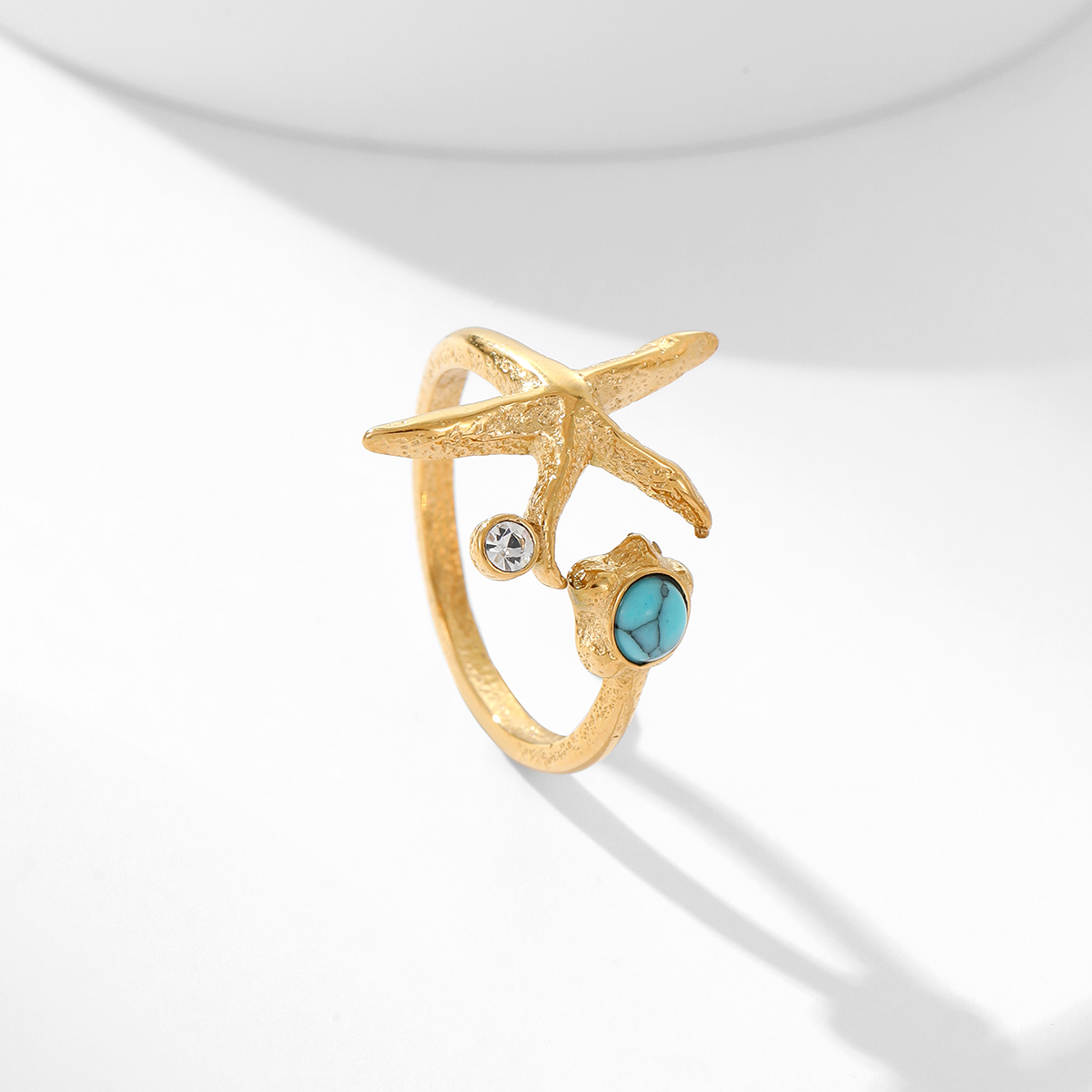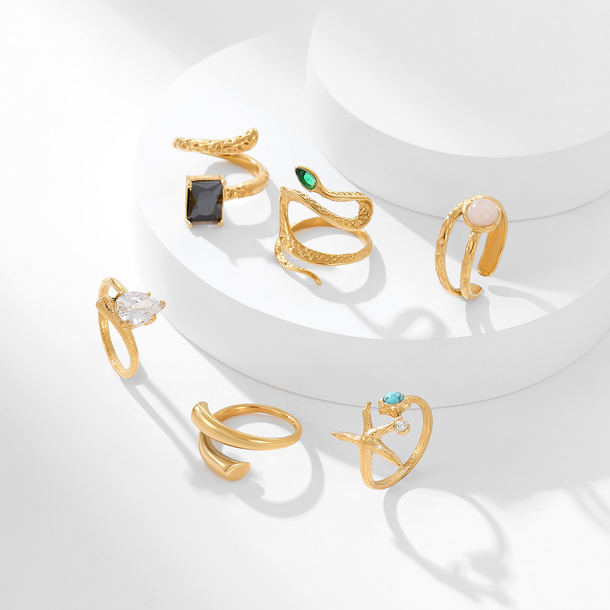 不锈钢全新时尚天然石几何花朵戒指
