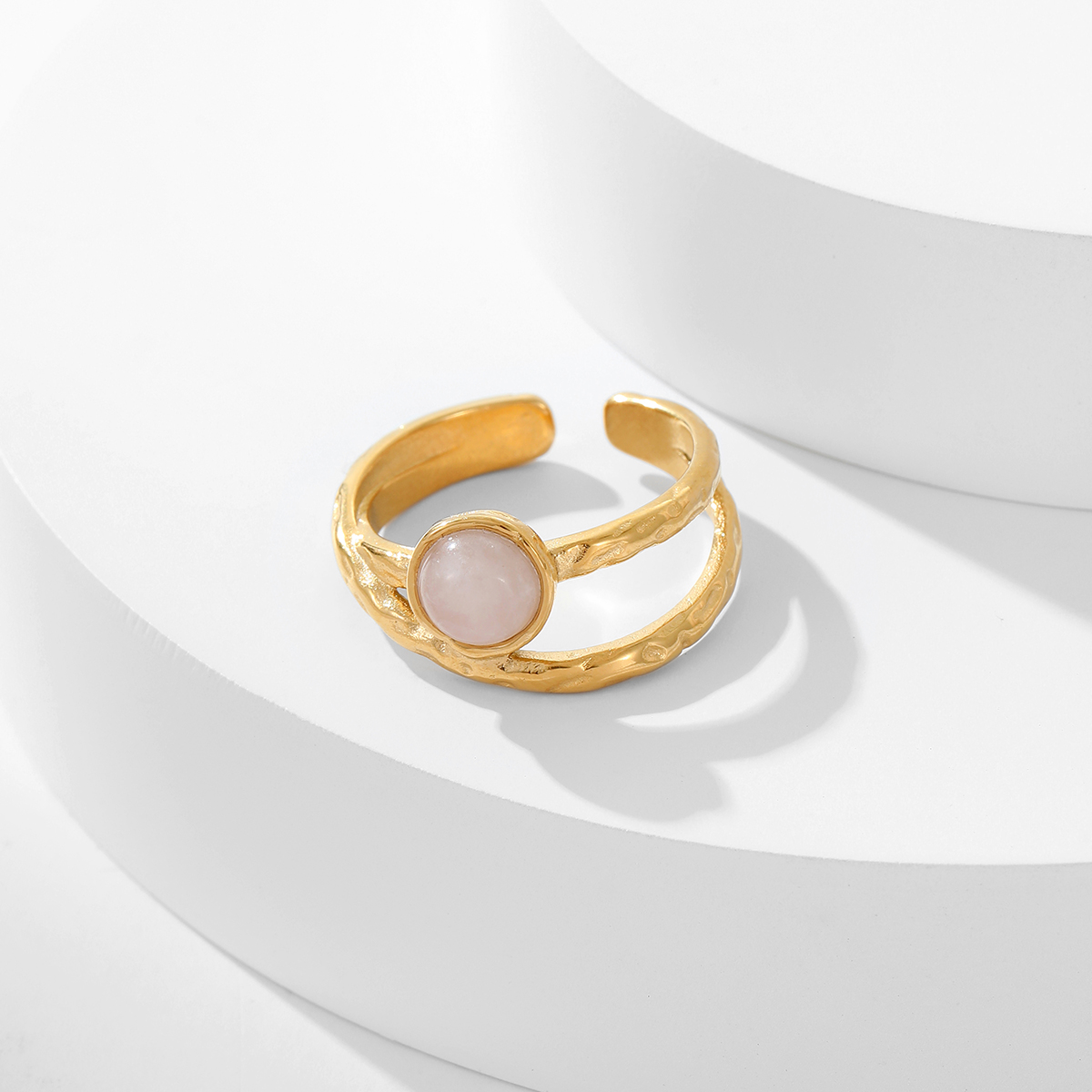 "不锈钢全新时尚天然石几何花朵戒指"